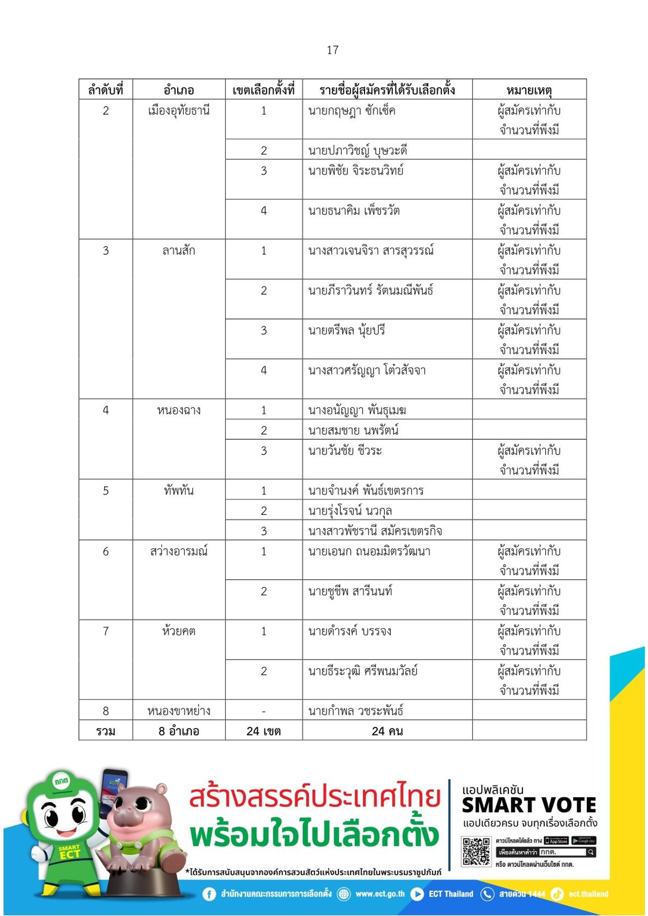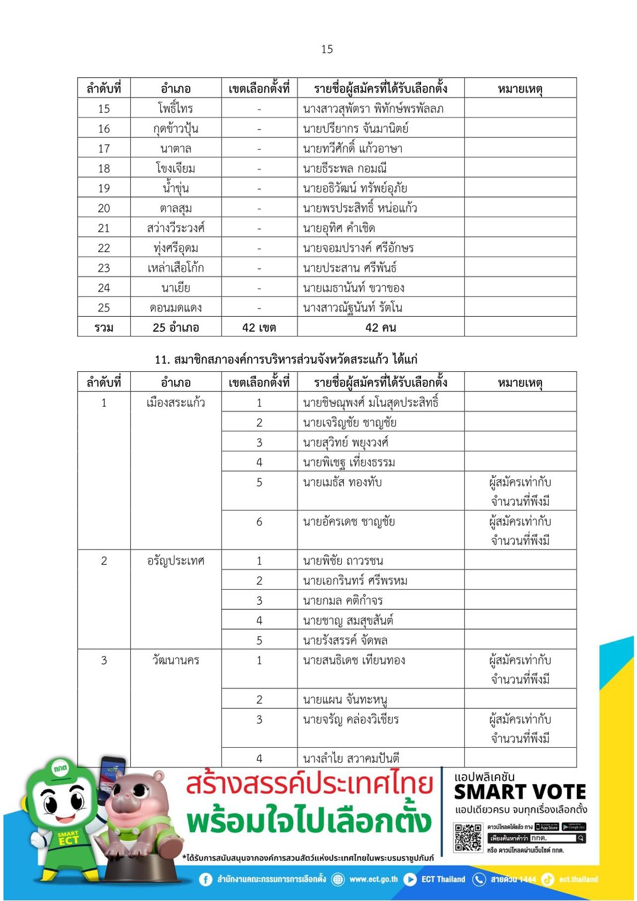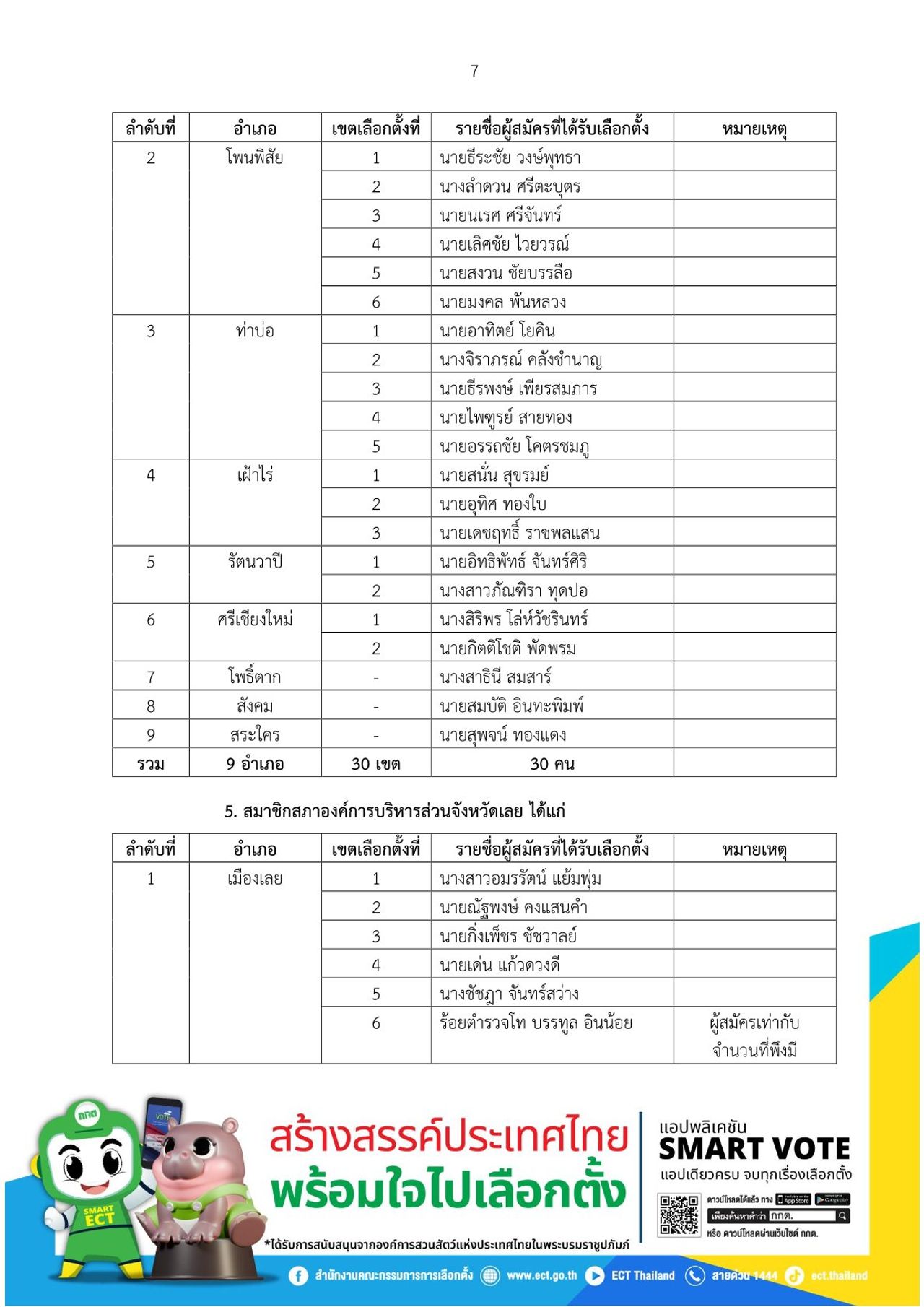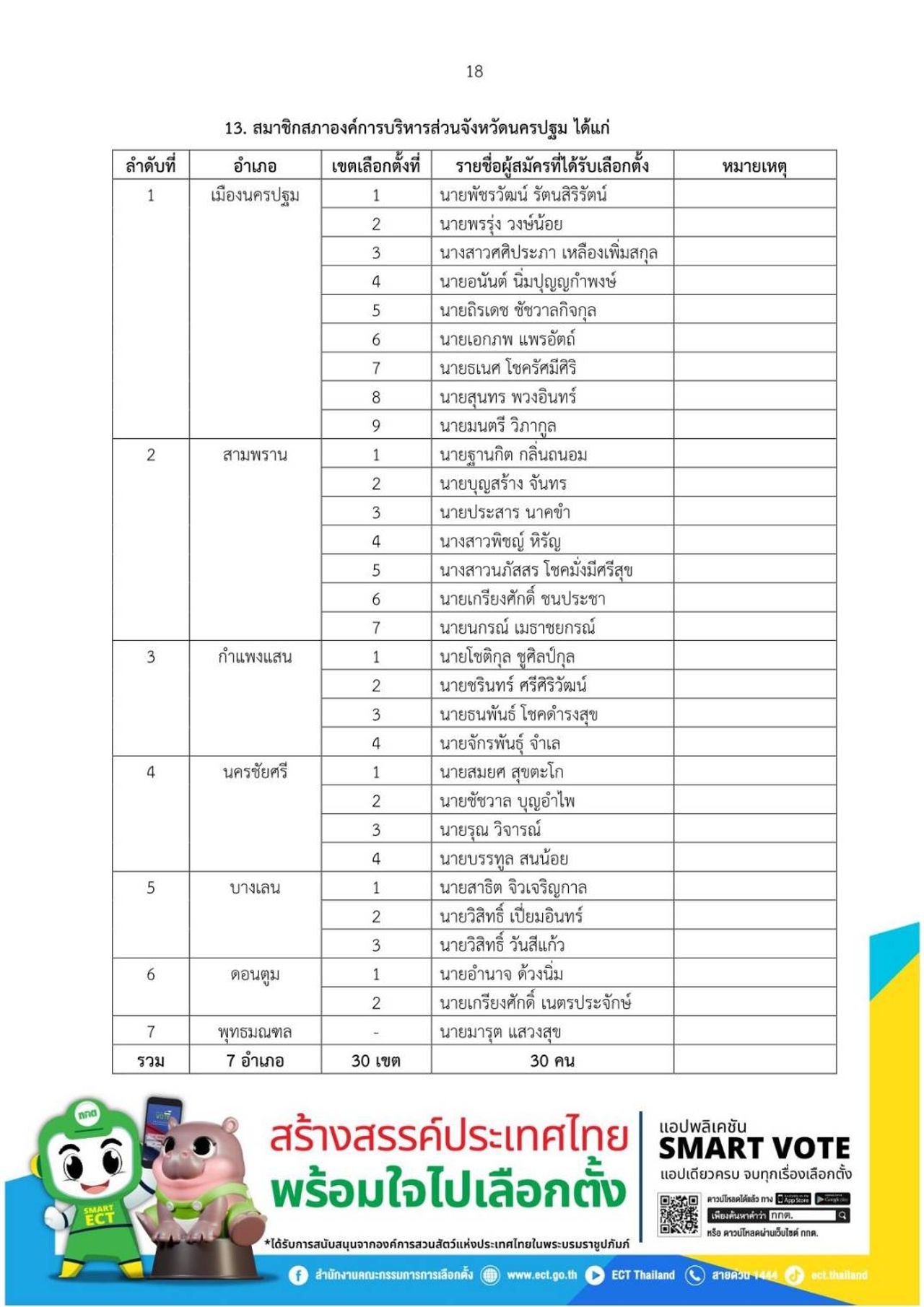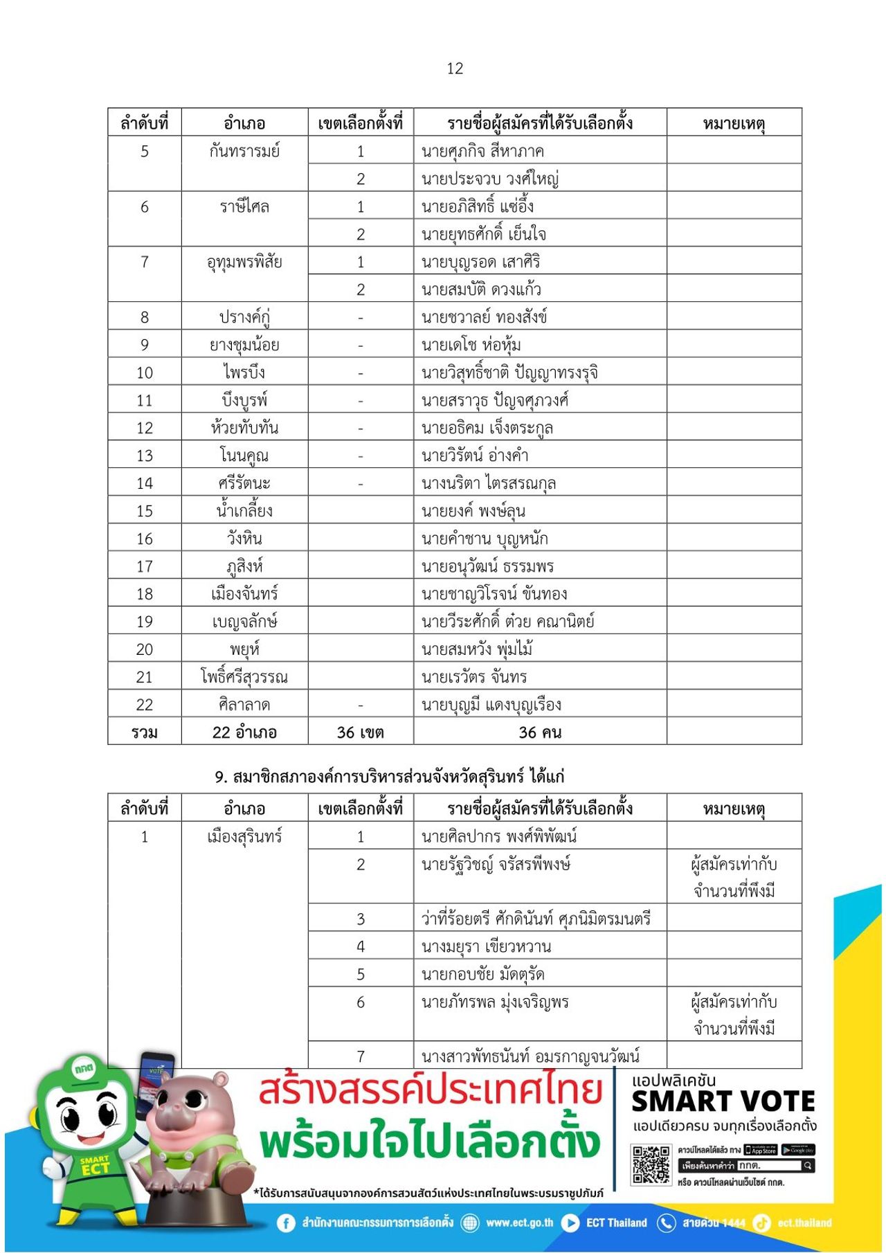 พร้อมกับประกาศผลการเลือกตั้งสมาชิกสภาองค์การบริหารส่วนจังหวัด จำนวน 19 จังหวัด ได้แก่ พิษณุโลก, อุตรดิตถ์, น่าน, หนองคาย, เลย, บึงกาฬ, ร้อยเอ็ด, ศรีสะเกษ, สุรินทร์, อุบลราชธานี, สระแก้ว, อุทัยธานี, นครปฐม, สิงห์บุรี, ชัยนาท, กระบี่, พัทลุง, ยะลา และนราธิวาส