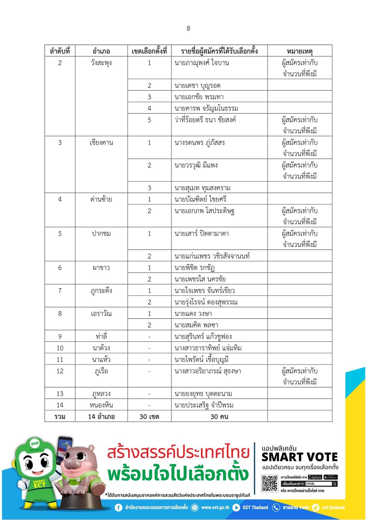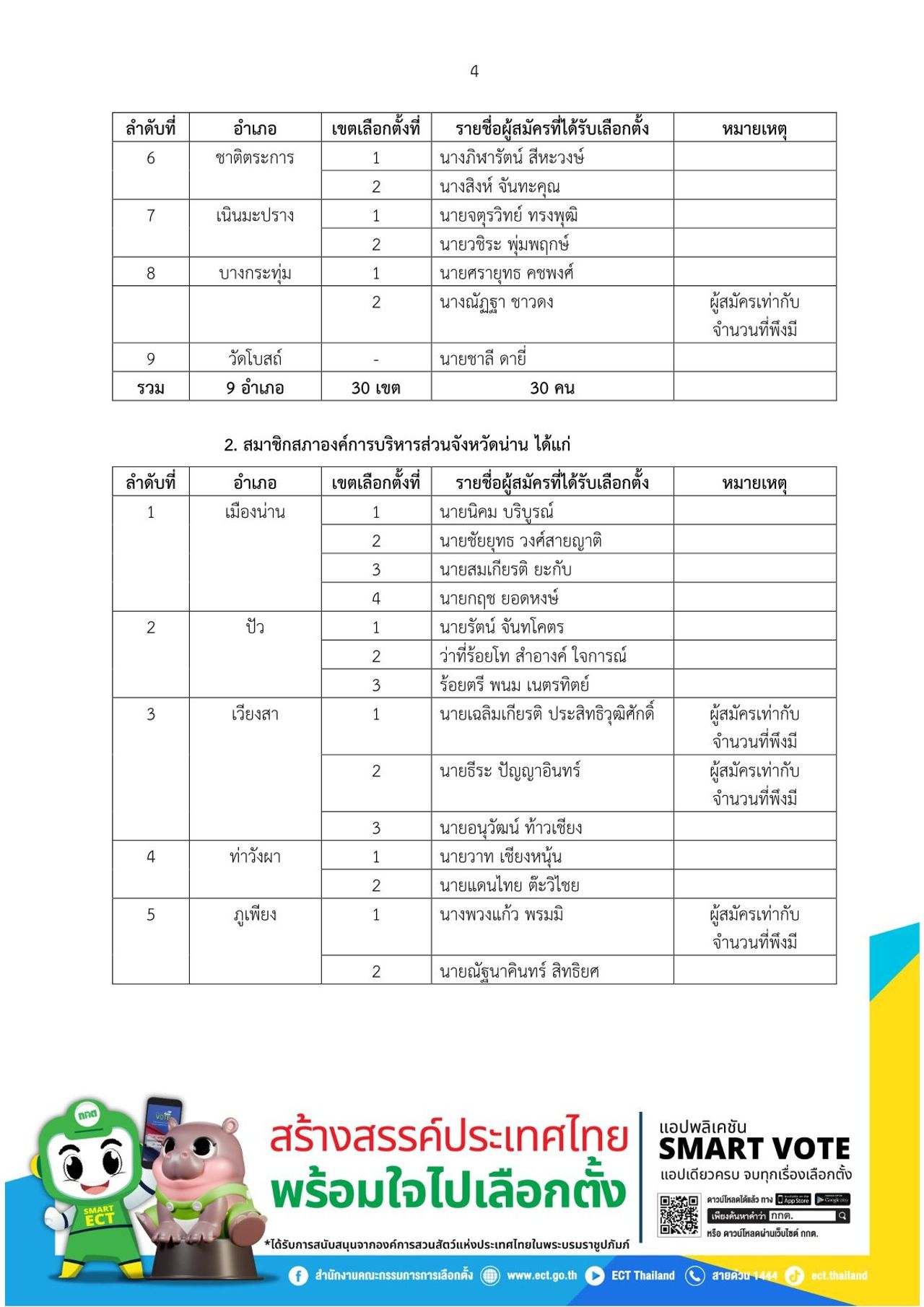 1. น่าน ผู้ได้รับเลือกตั้งคือ นายนพรัตน์ ถาวงศ์