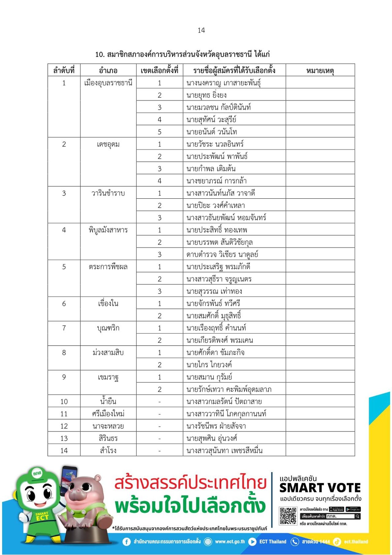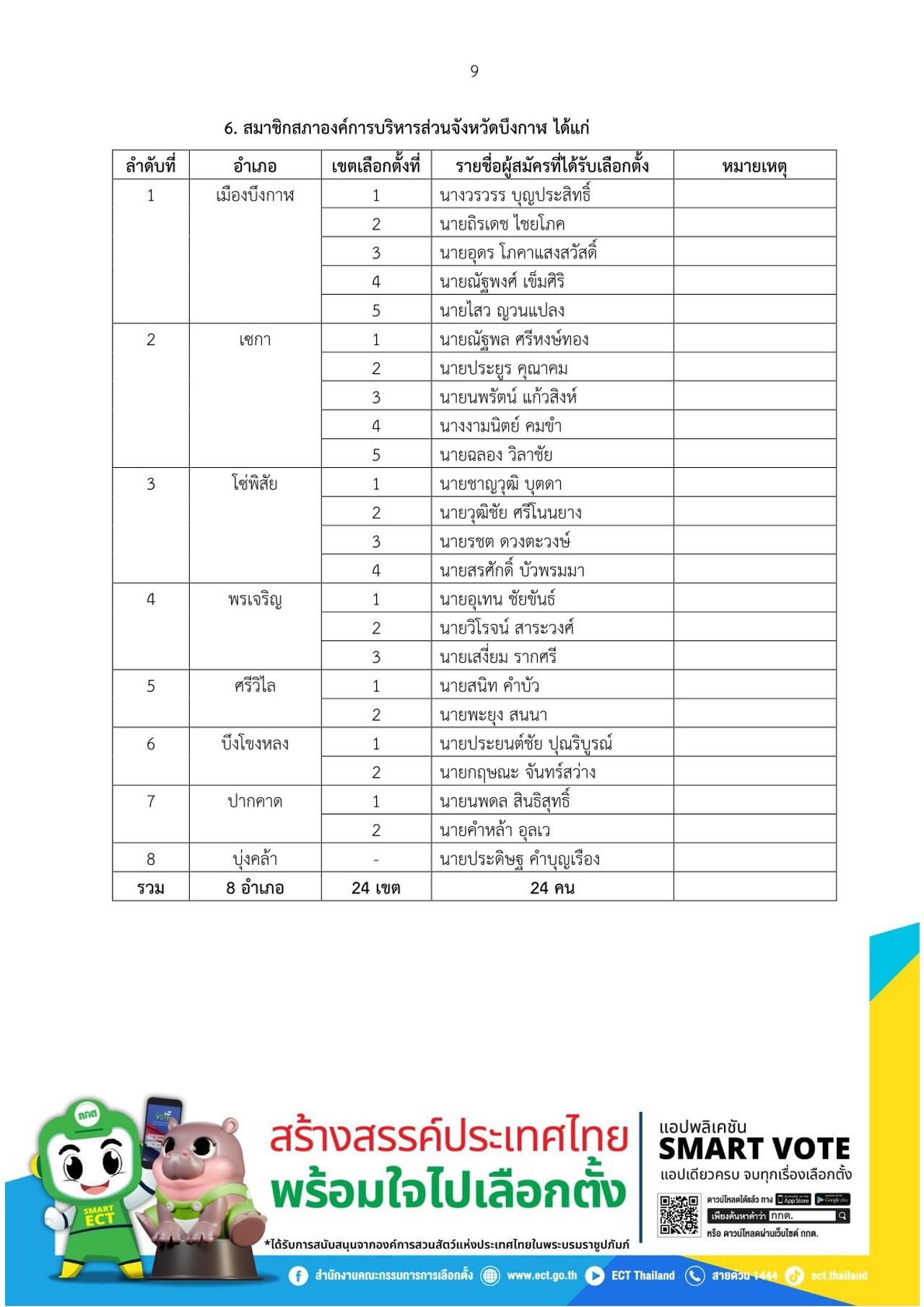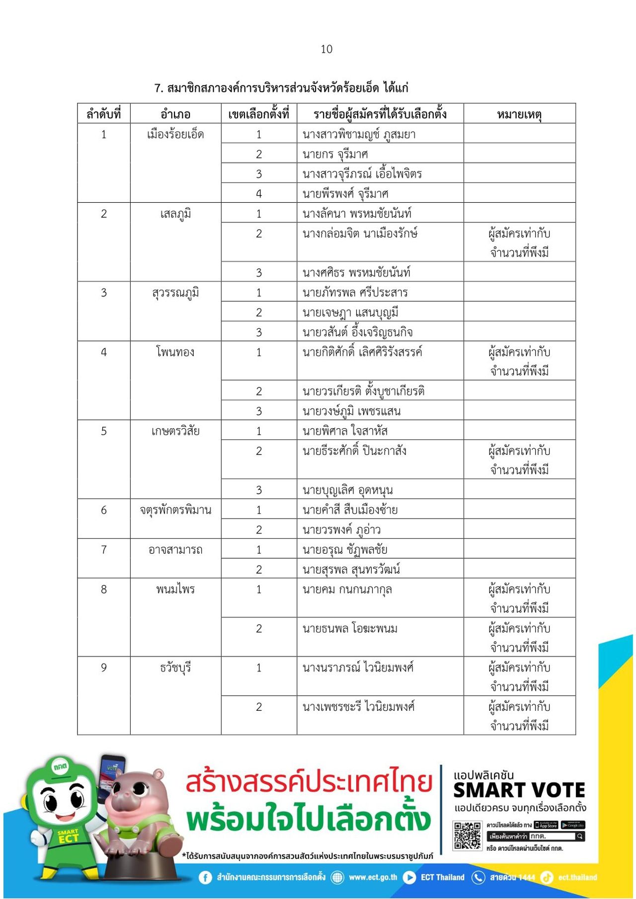 โดยประกาศผลการเลือกตั้งนายกองค์การบริหารส่วนจังหวัด จำนวน 10 จังหวัด ได้แก่