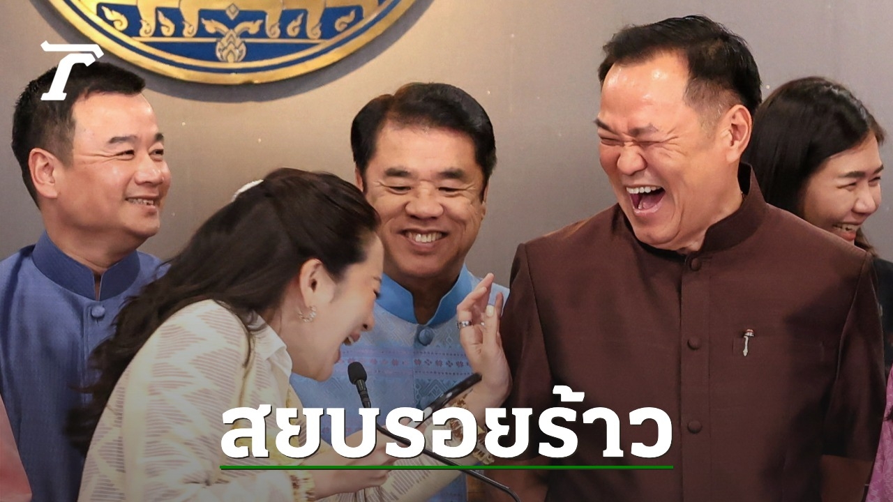 เมื่อเวลา 11.45 น. วันที่ 25 ก.พ. 2568 ที่ทำเนียบรัฐบาล น.ส.แพทองธาร ชินวัตร นายกรัฐมนตรี ให้สัมภาษณ์ภายหลังการประชุมคณะรัฐมนตรี (ครม.) โดยนายกฯ เดินนำหน้าลงมาพร้อมรองนายกฯ และรัฐมนตรี ด้วยท่าทีผ่อนคลาย และหัวเราะกันอย่างเป็นกันเอง ซึ่งในช่วงเดินเข้าโพเดียมแถลงข่าว นายกฯ กวักมือให้นายอนุทิน ชาญวีรกูล รองนายกฯ และรมว.มหาดไทย ที่เดินอยู่ข้างหลังให้ตามมาพร้อมระบุว่า “รีบกวักมือเชิญท่านอนุทินเลยนะคะ เดี๋ยวเขาจะว่าเรารอยร้าว” ก่อนที่นายอนุทิน ที่ยืนอยู่ข้างนายกฯ จะหันไปดึงนางนฤมล ภิญโญสินวัฒน์ รมว.เกษตรและสหกรณ์ ที่ยืนอยู่ห่างออกไปให้มายืนข้างๆ โดยจังหวะนี้นางนฤมลพูดว่า “อ๋อไม่ร้าว มาจับมือ” พร้อมยื่นมือไปจับกับนายอนุทิน ซึ่งนายกฯ ได้กระเซ้าไปว่า “นี่ร้าวด้วยเหรอคะ” จึงทำให้นายอนุทิน ตอบไปว่า “แตกเลย” ซึ่งนายภูมิธรรม เวชยชัย รองนายกฯ และรมว.กลาโหม ที่ยืนอยู่อีกข้างพูดขึ้นว่า “นี่อะไรไว้ใจไม่ได้เลย” จึงทำให้บรรดารองนายกฯ และรัฐมนตรีที่ยืนอยู่ด้านหลังนายกฯ ต่างพากันหัวเราะ