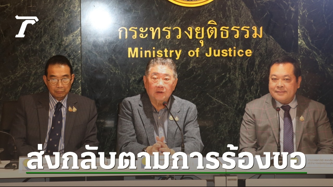 วันที่ 27 ก.พ. 2568 ที่กระทรวงยุติธรรม นายภูมิธรรม เวชยชัย รองนายกรัฐมนตรีและรัฐมนตรีว่าการกระทรวงกลาโหม พร้อมด้วยพันตำรวจเอก ทวี สอดส่อง รัฐมนตรีว่าการกระทรวงยุติธรรม นายมาริษ เสงี่ยมพงษ์ รัฐมนตรีว่าการกระทรวงการต่างประเทศ พลตำรวจตรี ธนิต ไทยวัชรามาศ รองผู้บัญชาการสำนักงานตรวจคนเข้าเมือง นายสรพงค์ ศรียานงค์ รองเลขาธิการสภาความมั่นคงแห่งชาติ (สมช.) และนายจิรายุ ห่วงทรัพย์ โฆษกประจำสำนักนายกรัฐมนตรี ร่วมกันแถลงข่าว