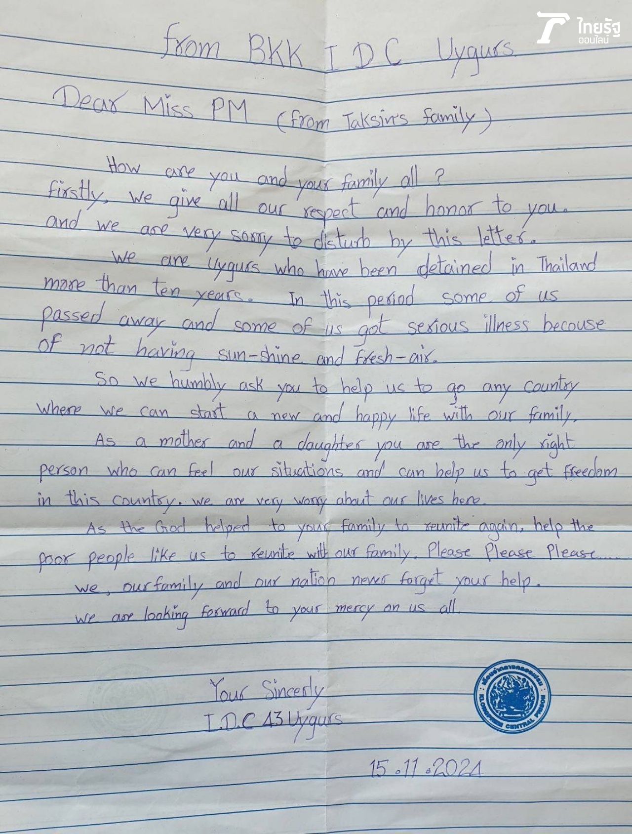 นายกัณวีร์ กล่าวอีกว่าวันนี้มีการเปิดเผยจดหมาย 3 ฉบับ จากชาวอุยกูร์ที่อยู่ในห้องขัง ตม. (สวนพลู) ส่งให้สำนักงานข้าหลวงใหญ่ผู้ลี้ภัยแห่งสหประชาชาติ (UNHCR)เมื่อเดือนพฤศจิกายนที่ผ่านมา ขอให้ช่วยลงทะเบียนคุ้มครองผู้ลี้ภัย เพราะไม่อยากกลับไปเจอการประหัตประหารที่ประเทศจีน ส่วนจดหมายฉบับที่ 2 จากครอบครัวชาวอุยกูร์ที่ได้รับการตั้งถิ่นฐานใหม่ในประเทศตุรเคีย(ตุรกี) เขาอยากให้รับครอบครัวของเขาไปอยู่ด้วยกันที่ตุรเคีย