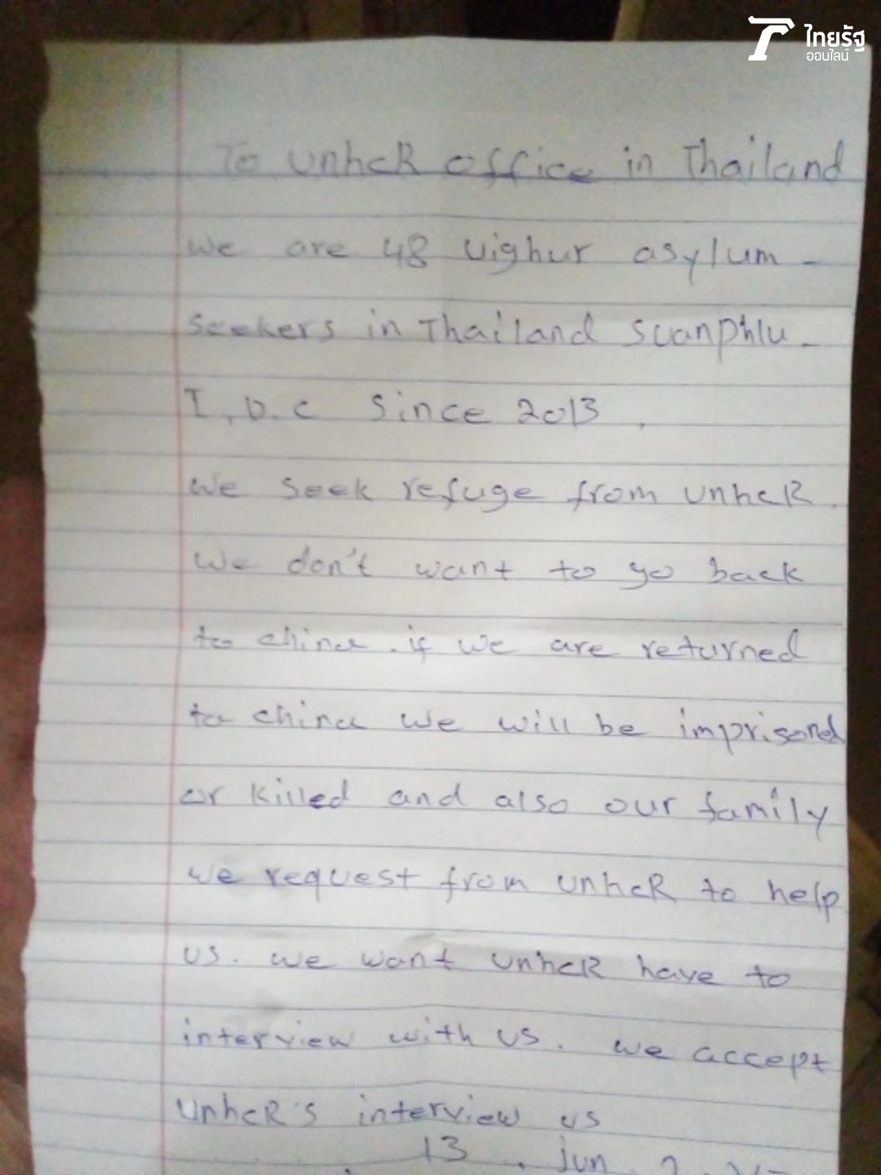 ส่วนหนังสือฉบับที่ 3 ชาวอุยกูร์เขียนเป็นหนังสือภาษาตัวเอง ที่ออกมาขอความช่วยเหลือ สิ่งเหล่านี้เป็นหลักฐานว่าพวกเขาไม่อยากกลับไปยังประเทศจีน พวกเขากลัวว่าจะถูกส่งกลับ จึงได้อดอาหารประท้วง มาวันนี้จะเป็นไปได้อย่างไรว่าชาวอุยกูร์เหล่านั้นสมัครใจกลับจีน หากอยากกลับจริงจะเสียเวลา 11 ปี ในห้องขังทำไม แบบนี้เท่ากับโกหกคำโต