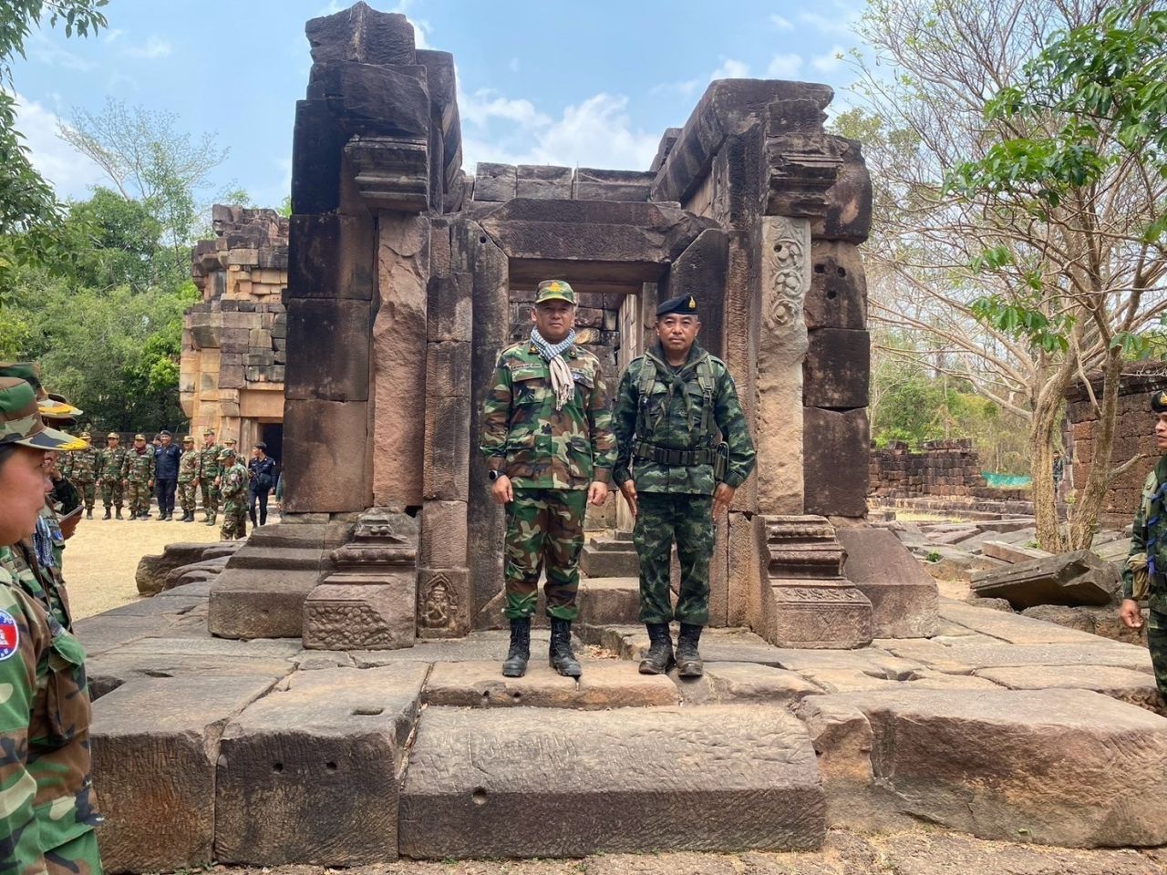 พล.อ.เตีย เซ็ยฮา เดินทางพบปะผู้บังคับการหน่วยเฉพาะกิจที่ 2 เยี่ยมชมพื้นที่ปราสาทตาเมือนธม สอบถามข้อมูลจำนวนนักท่องเที่ยวทั้ง 2 ประเทศ ยืนยันดำรงมิตรภาพที่ดีต่อกัน