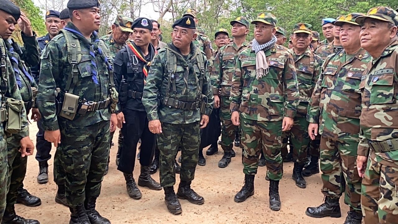 วันที่ 7 มี.ค. 2568 ผู้สื่อข่าวรายงานจากบริเวณตาเมือนธม ตาเมียง อ.พนมดงรัก จ.สุรินทร์ ว่า วานนี้ (6 มี.ค.) พ.อ.ภาคภูมิ นภากาศ ผู้บังคับการหน่วยเฉพาะกิจที่ 2 (ผบ.ฉก.2) พร้อมผู้บังคับบัญชาและกำลังพล พัน.ร.21 พบปะ พล.อ.เตีย เซ็ยฮา รมว.กลาโหมกัมพูชา ที่เดินทางมาพื้นที่ปราสาทตาเมือนธม