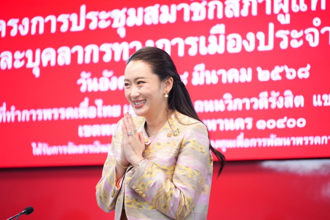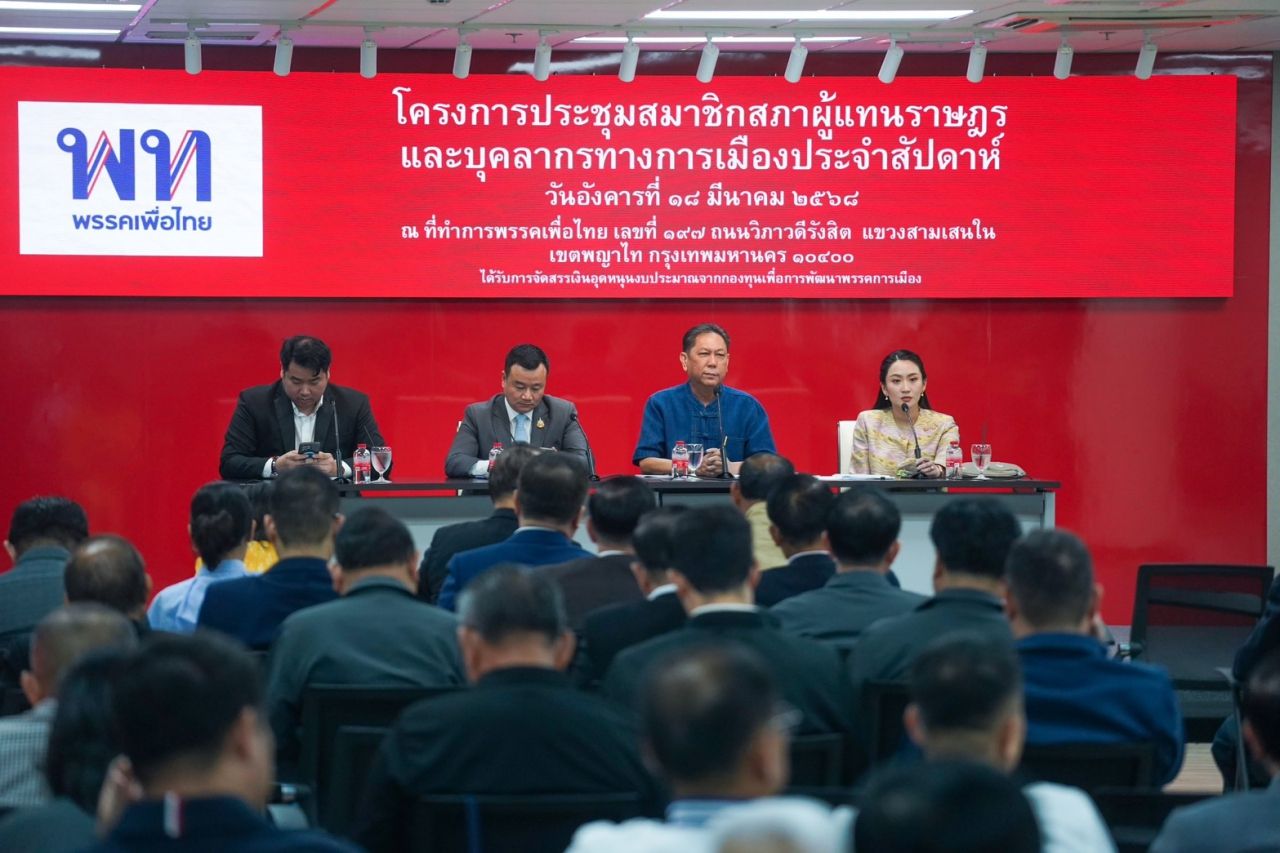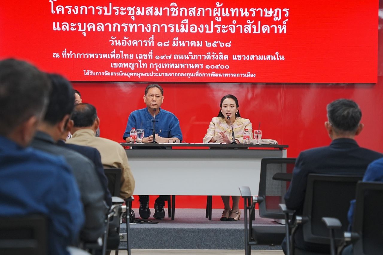 วันที่ 18 มีนาคม 2568 ผู้สื่อข่าวรายงานว่าวันนี้มีการประชุมพรรคเพื่อไทย นายสรวงศ์ เทียนทอง รัฐมนตรีว่าการกระทรวงท่องเที่ยวและกีฬา ในฐานะเลขาธิการพรรคเพื่อไทย และนายวิสุทธิ์ ไชยณรุณ สมาชิกสภาผู้แทนราษฎร (สส.) แบบบัญชีรายชื่อ พรรคเพื่อไทย ร่วมเป็นประธานการประชุม ซึ่ง น.ส.แพทองธาร ชินวัตร นายกรัฐมนตรี ในฐานะหัวหน้าพรรคเพื่อไทย เข้าร่วมประชุมด้วย โดยจูงน้องธิธาร บุตรสาว และอุ้มน้องธาษิณ บุตรชาย มาที่ทำการพรรคด้วย