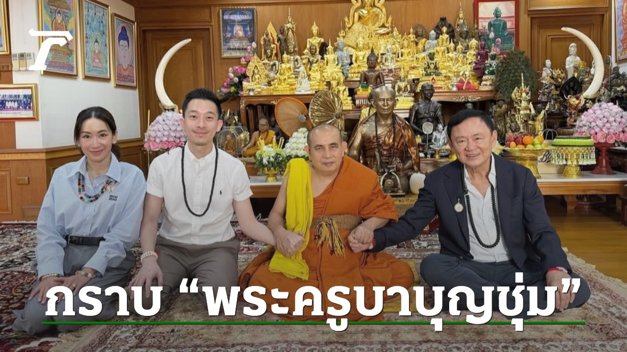 “อดีตนายกฯ ทักษิณ” พร้อม “พินทองทา-ณัฐพงศ์” กราบนมัสการ “พระครูบาบุญชุ่ม” พร้อมรับมอบสร้อยลูกประคำ พระพุทธรูปจำลองเอาไว้บูชา