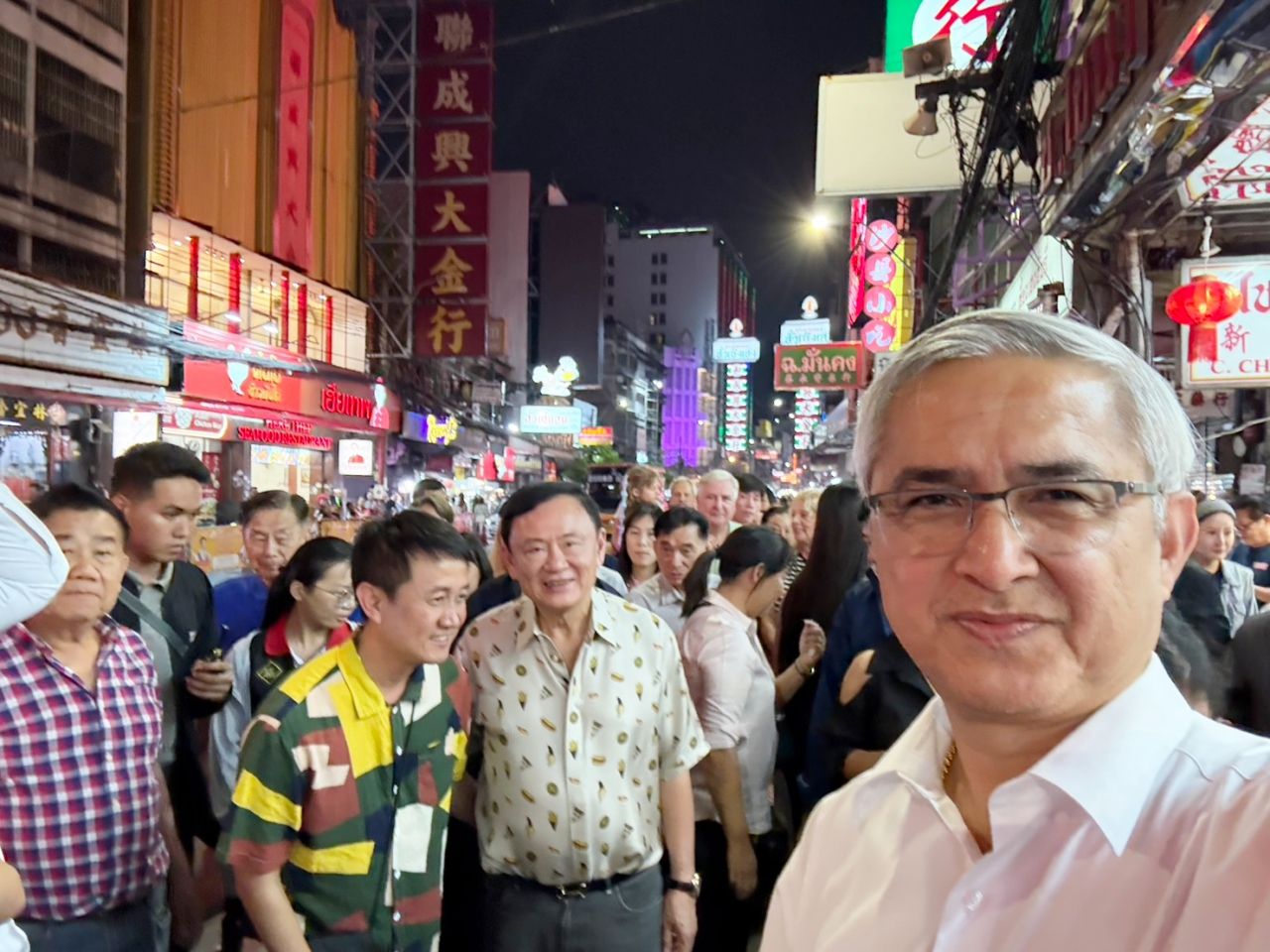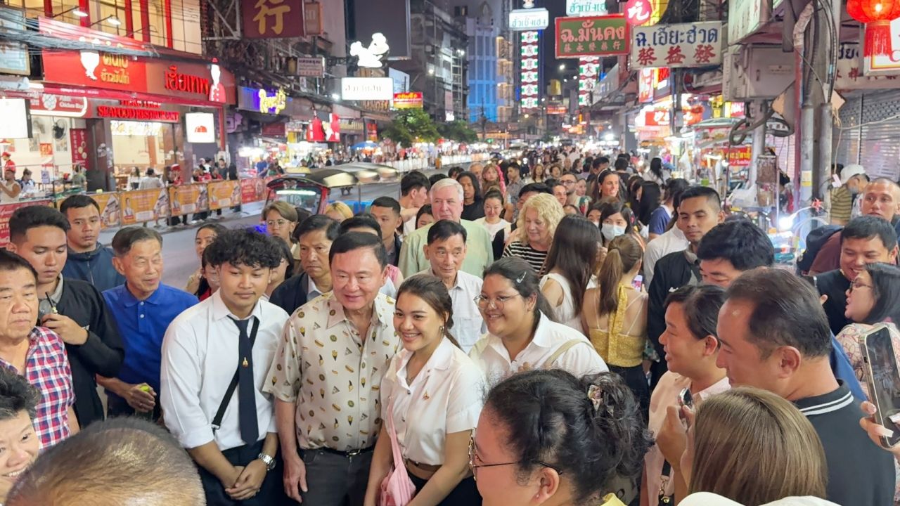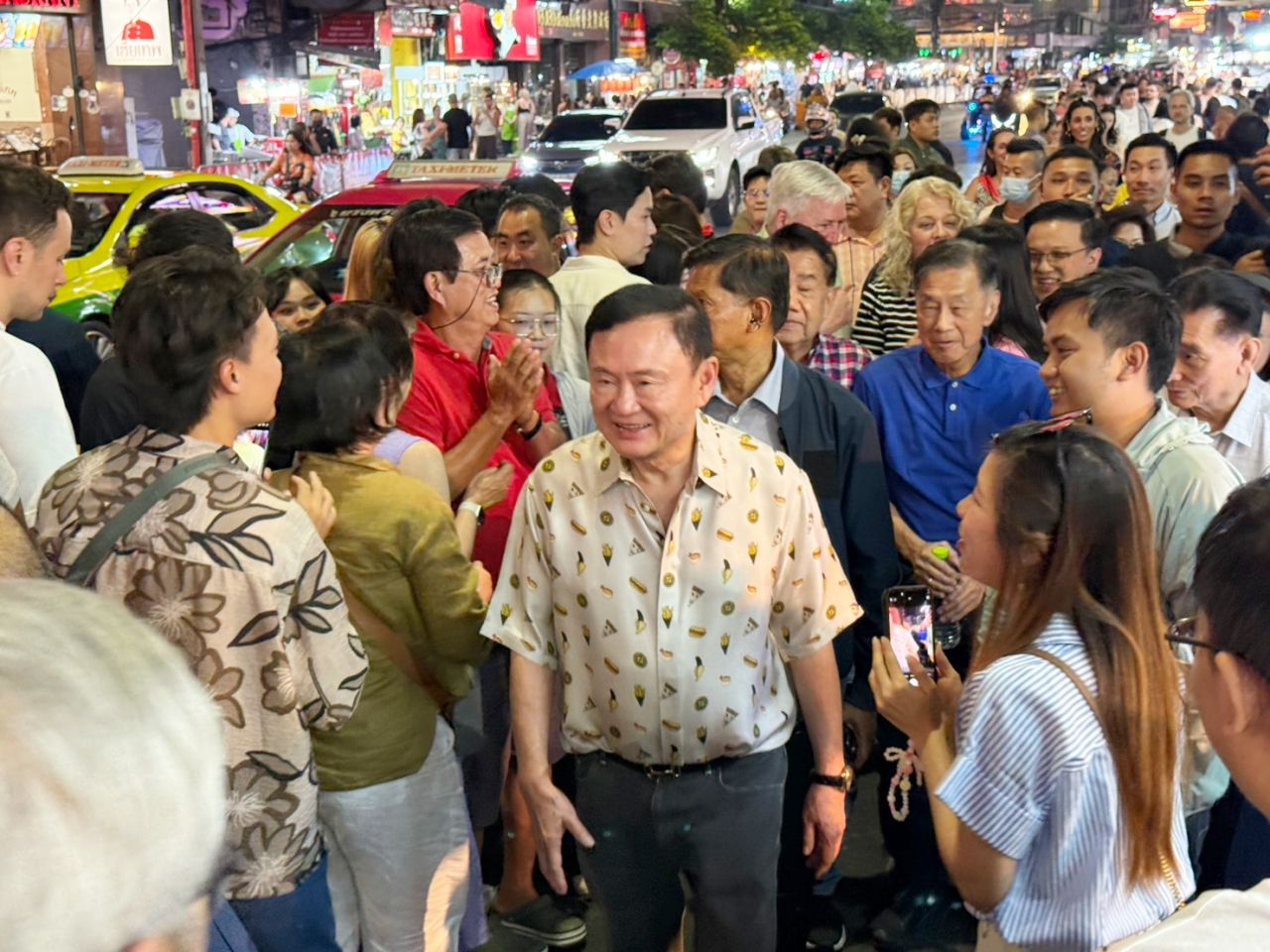“ทักษิณ” อารมณ์ดี เดินเที่ยวเยาวราชในรอบ 19 ปี ทานบะหมี่หมูแดง กินอาหารร้านโปรดกับเพื่อนนักธุรกิจ ก่อนเดินเล่น แฟนคลับ-นักท่องเที่ยวแห่ขอเซลฟี่แน่นด้วย “ก่อแก้ว” ยัน ไม่มีนัยทางการเมือง บอก อดีตนายกฯ เคยเปรยตอนอยู่ดูไบ