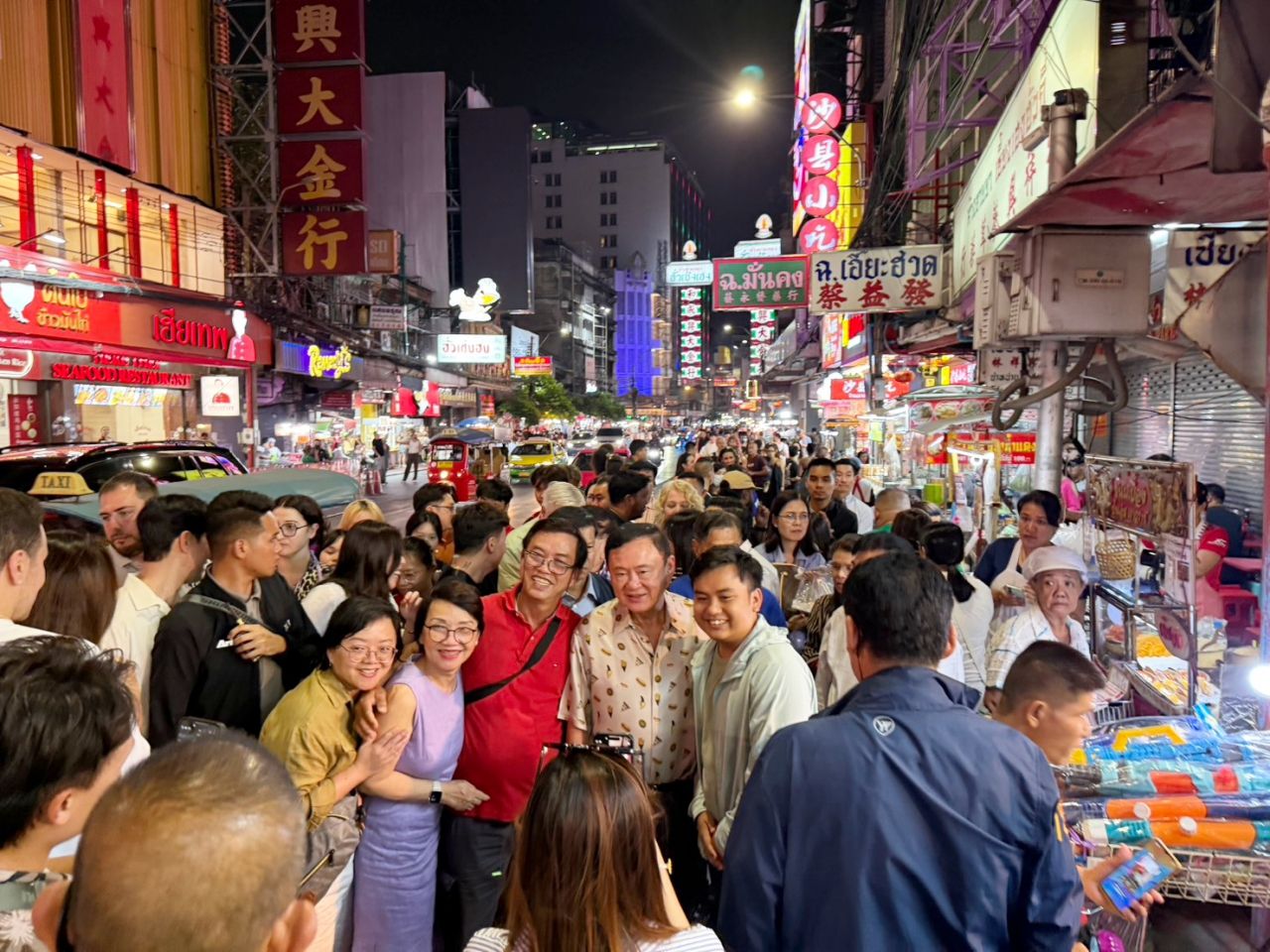 ในช่วงหนึ่งนายทักษิณและคณะแวะทานก๋วยเตี๋ยว โดยนายทักษิณทานเมนูบะหมี่หมูแดง หลังจากรับประทานอาหารเสร็จยังได้เดินเล่นถนนเยาวราช โดยมีประชาชน นักท่องเที่ยวทั้งชาวไทยและชาวต่างชาติ ขอเซลฟี่กันเป็นจำนวนมาก และยังได้อุดหนุนพ่อค้าแม่ค้าซื้อของกลับบ้านหลายอย่าง ทั้งนี้ ถือเป็นการมาเยาวราชครั้งแรกในรอบ 19 ปีของนายทักษิณ หลังกลับมาประเทศไทย