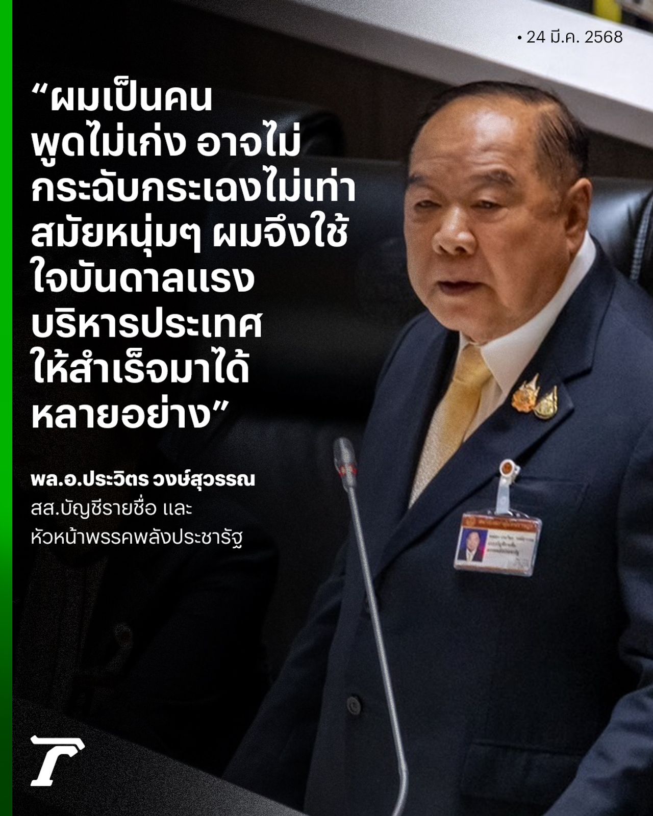 จากนั้น พล.อ.ประวิตร ได้กล่าวอภิปรายต่อว่า ประเด็นแรก รัฐบาลแพทองธาร บริหารประเทศล้มเหลว ปัญหาปากท้องไม่ได้รับการแก้ไขอย่างที่ได้รับสัญญา การแก้ไขปัญหาไม่ตรงจุด ประชาชนเกิดปัญหาหนี้สินทั้งในระบบและนอกระบบ หนี้ครัวเรือนสูงถึง 104% ราคาพืชผลทางการเกษตรตกต่ำ ตลาดหุ้นดำดิ่ง เศรษฐกิจไทยมืดมน แต่รัฐบาลกลับนิ่งเฉย