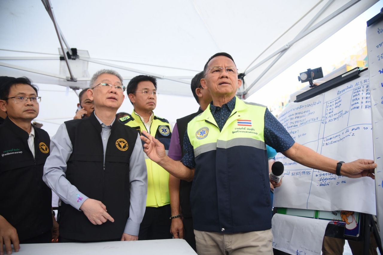 ทางด้าน นายสมศักดิ์ เทพสุทิน รัฐมนตรีว่าการกระทรวงสาธารณสุข เป็นประธานการประชุมศูนย์ปฏิบัติการฉุกเฉิน หรือ Emergency Operations Center (EOC) เพื่อรับมือสถานการณ์แผ่นดินไหว เบื้องต้นพบว่ามีโรงพยาบาลใน 17 จังหวัด ได้รับผลกระทบจากแผ่นดินไหว มีรอยร้าวของตึก แต่ไม่ได้ส่งผลกระทบต่อโครงสร้างตึก และส่วนใหญ่อยู่ในพื้นที่ภาคเหนือ รวมทั้งมีการรายงานการตั้งโรงพยาบาลสนามใกล้จุดเกิดเหตุ ประสานงานกันระหว่างทีมกู้ชีพและทีมกู้ภัย พร้อมมอบข้อสั่งการว่า