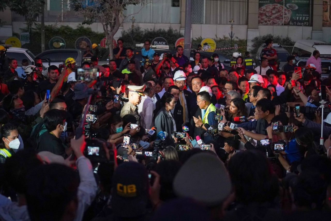 ทั้งนี้ นายกรัฐมนตรีได้รับฟังรายงานจาก พล.ต.ท.สยาม บุญสม ผู้บัญชาการตำรวจนครบาล และนายสมศักดิ์ รายงานถึงสถานการณ์และแผนการปฏิบัติงานรวมถึงจำนวนผู้เสียชีวิต จากนั้นนายกรัฐมนตรีเดินเข้าไปตรวจสอบภายในจุดเกิดเหตุในพื้นที่ที่กันไว้ และรับฟังรายงานจาก พล.ต.อ.กิตติ์รัฐ พันธุ์เพ็ชร์ ผู้บัญชาการตำรวจแห่งชาติ (ผบ.ตร.) โดยนายกรัฐมนตรีได้สอบถามถึงจำนวนผู้ที่ติดค้างอยู่ในอาคาร และแผนวิธีการช่วยเหลือ