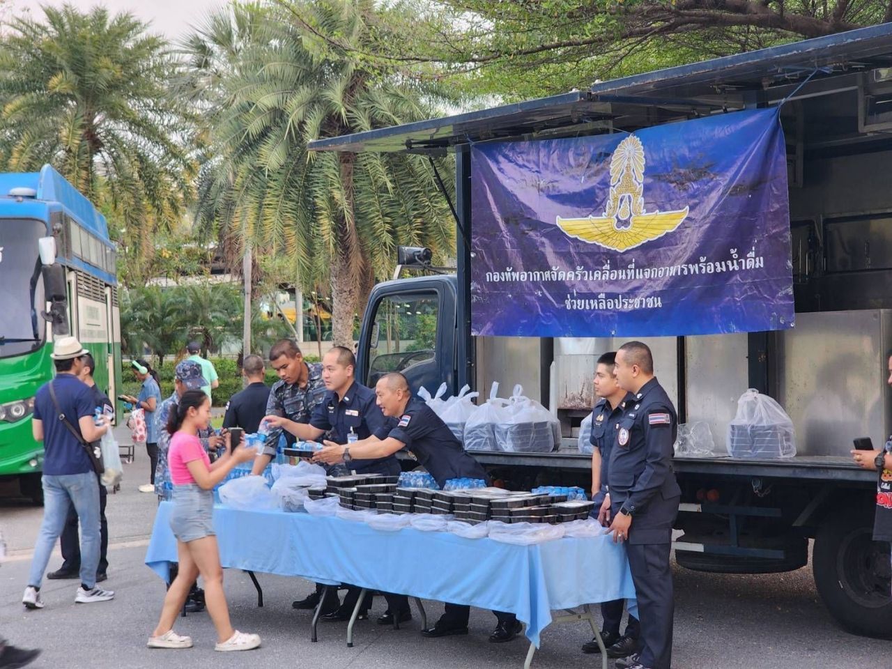 เมื่อเวลา 08.00 น. วันที่ 30 มีนาคม 2568 พล.อ.อ.พันธ์ภักดี พัฒนกุล ผู้บัญชาการทหารอากาศ (ผบ.ทอ.) ในฐานะผู้อำนวยการศูนย์บรรเทาสาธารณภัยกองทัพอากาศ กล่าวที่ท่าอากาศยานทหาร 2 กองบิน 6 ดอนเมือง ว่า ได้สั่งการให้เจ้าหน้าที่ศูนย์บรรเทาสาธารณภัยกองทัพอากาศ ประสานงานและร่วมมือกับศูนย์บรรเทาสาธารณภัยกองทัพบก และกรุงเทพมหานคร ในการนำครัวพระราชทานและรถครัวเคลื่อนที่พร้อมกำลังพลจิตอาสา ออกให้บริการอาหารและน้ำดื่มแก่ประชาชนที่พักอาศัยบริเวณใกล้อาคารสำนักงานการตรวจเงินแผ่นดิน (สตง.) แห่งใหม่ ประชาชนที่พักอาศัยชั่วคราวบริเวณสวนจตุจักร รวมถึงสนับสนุนวิศวกรอาสาที่ออกสำรวจความปลอดภัยอาคารที่พักอาศัยให้ประชาชนที่ได้รับความเดือดร้อน