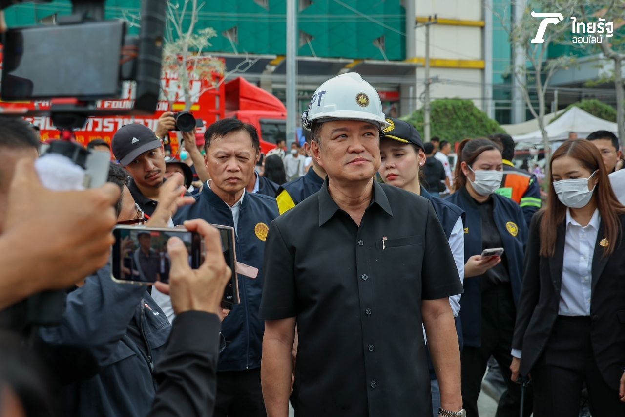 “ตึกมันปิดหลังคาไปแล้วนี่ เราดูภาพจากโดรนก่อนที่จะมีเหตุการณ์แผ่นดินไหว ที่เขาโฆษณาตึกนี้ เราก็เห็นว่าส่วนชั้นบนสุดของอาคารก็ดำเนินการเรียบร้อยแล้ว ที่บอกว่าปูนไม่เซ็ต ปูนไม่เซ็ตอย่างไรก็ไม่ใช่เหตุผลที่จะทำให้ตึกถล่มได้ แล้วตึกนี้ยังต้องติดกระจกเข้าไปอีกใช่ไหม กระจกก็อีกกี่ร้อยตัน นี่เขายังไม่แบกน้ำหนักกระจกอีก ทำไมเขาถึงลงมา กรรมการที่ผมเพิ่งตั้งไปเมื่อเช้าวันนี้เขามีเวลา 7 วันที่จะต้องเร่งตรวจสอบ ถ้าเขาทำได้เต็มที่ก็อาทิตย์หน้า แต่ถ้าเขามีความจำเป็นที่จะต้องขอยืดระยะเวลาก็จะแจ้งผมมา เราต้องการความจริง เราไม่ได้ต้องการว่าทุกอย่างต้องเป็นไปด้วยความรวดเร็ว เร่งด่วน แต่ขาดการดำเนินการที่รอบคอบ และแน่นอนว่าต้องหาผู้รอดชีวิตและผู้ไม่รอดชีวิต ไม่ทิ้งซากใดๆ ไว้ในสถานที่แห่งนี้”