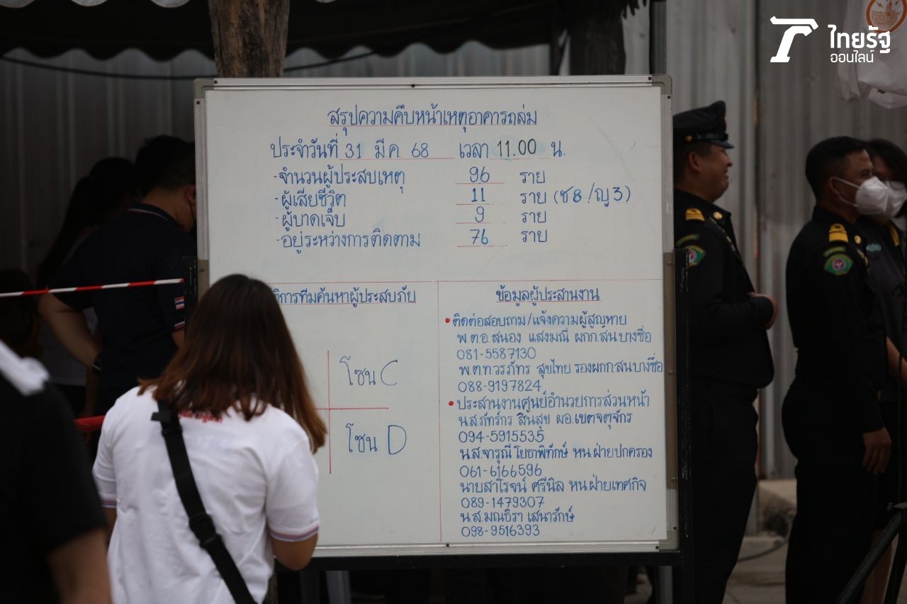 ส่วนการแจ้งเตือนแผ่นดินไหวไปยังนักท่องเที่ยว นายกรัฐมนตรี เผยว่า ได้มีการแจ้งนักท่องเที่ยวผ่านกระทรวงการท่องเที่ยวและกีฬา รวมถึงกระทรวงการต่างประเทศ และเมื่อสักครู่ที่ตนได้กล่าวบนเวทีว่า กรณีตึกถล่ม (อาคารสำนักงานการตรวจเงินแผ่นดินแห่งใหม่) เกิดจากการผิดพลาดทางเทคนิคกับตึกๆ เดียว ส่วนมาตรฐานตึกของกรุงเทพฯ ทั้งหมด สร้างไว้เพื่อรองรับแผ่นดินไหว เพราะฉะนั้นตึกอื่นถึงแม้จะไม่ได้เกิดปัญหา หรืออาจจะเกิดปัญหาในตึกเล็กๆ น้อยๆ แต่ไม่มีตึกถล่มที่ไหนเพิ่มเติมอีก มีแค่ที่เดียว