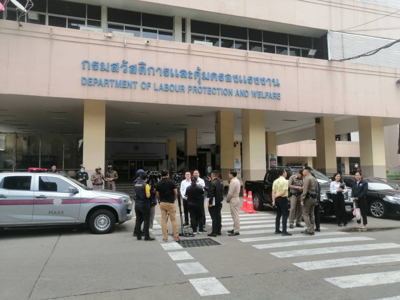 ต่อมาเวลา 12.20 น. นายพิพัฒน์ รัชกิจประการ รัฐมนตรีว่าการกระทรวงแรงงาน เดินทางเข้ามาในกระทรวงโดยย้ายที่ทำงานจากชั้น 6 ตึก 15 ชั้น มาอยู่ที่ตึก 5 ชั้นสร้างใหม่ของกรมพัฒนาฝีมือแรงงาน และได้สอบถามถึงสถานการณ์ที่เกิดขึ้น พร้อมกล่าวว่า เจ้าหน้าที่จะ Work From Home จนกว่าจะได้รับการยืนยันผลการตรวจสอบจากหน่วยงานที่เกี่ยวข้องว่าปลอดภัย แต่หากยังเข้าทำงานในตึกไม่ได้ ก็มีการติดต่อกับทางกรุงเทพมหานคร (กทม.) เอาไว้ว่าอาจจะย้ายเจ้าหน้าที่ของกระทรวงแรงงานไปทำงาน และให้บริการประชาชนที่ศูนย์เยาวชนกรุงเทพมหานคร ไทย-ญี่ปุ่น ดินแดง ชั่วคราวก่อน