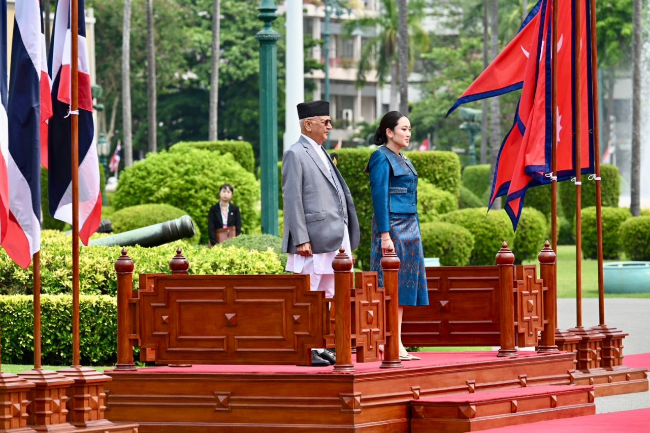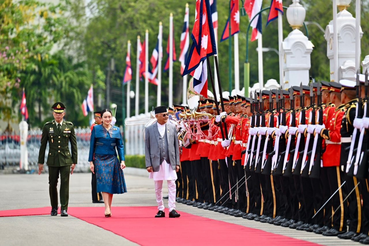 วันที่ 2 เมษายน 2568 เมื่อเวลา 10.30 น. นางสาวแพทองธาร ชินวัตร นายกรัฐมนตรี ให้การต้อนรับ นายเค พี ศรรมะ โอลี (Rt. Hon. Mr. K P Sharma Oli) นายกรัฐมนตรีเนปาล และภริยา ในโอกาสการเยือนประเทศไทยอย่างเป็นทางการในฐานะแขกของรัฐบาล จากนั้นนายกรัฐมนตรีไทยและนายกรัฐมนตรีเนปาลร่วมตรวจแถวกองทหารเกียรติยศ ณ บริเวณสนามหญ้าหน้าตึกไทยคู่ฟ้า ทำเนียบรัฐบาล และเชิญนายกรัฐมนตรีเนปาลไปยังห้องสีม่วงเพื่อแนะนำคณะรัฐมนตรี (ครม.) และไปยังห้องสีงาช้างด้านนอก ลงนามในสมุดเยี่ยมและชมของที่ระลึกที่ทั้งสองฝ่ายมอบให้แก่กัน ก่อนเข้าร่วมหารือทวิภาคี ณ ห้องสีงาช้าง