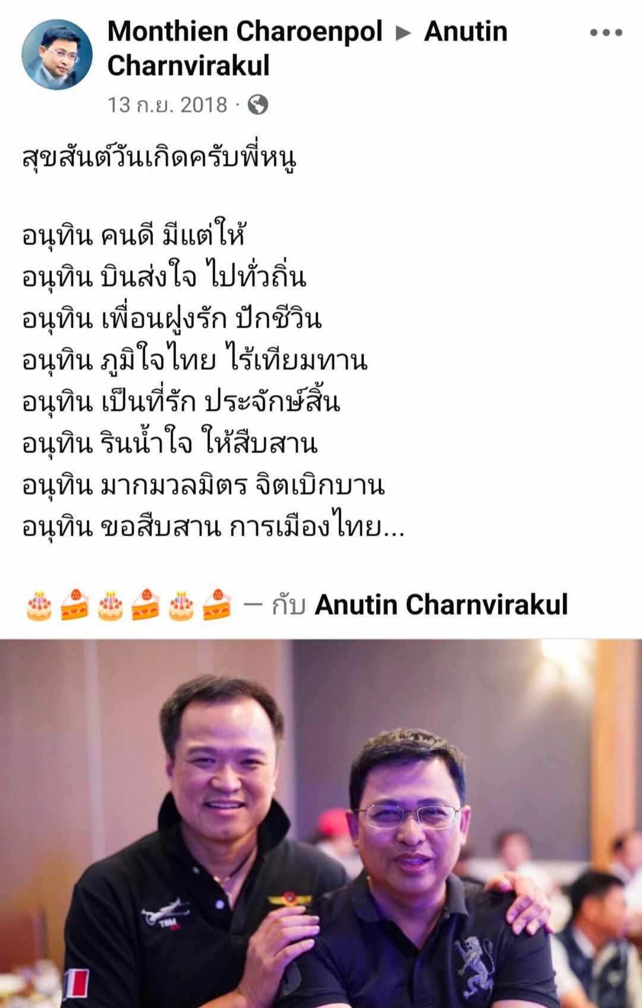 ส่วนถ้ามีอะไรพาดพิง จะฟ้องร้องหรือไม่ นายอนุทินบอกว่า ไม่จริงตนก็ไม่รู้จะไปฟ้องทำไม เรื่องแค่นี้ ก็ยืนยันว่าเป็นเพื่อนกันจริง แต่เรื่องความช่วยเหลือไม่มี ทั้งนี้ หลังเกิดเหตุยอมรับว่าได้มีการพูดคุยกับนายมณเฑียร เมื่อวาน (5 เม.ย.) ก็คุยในไลน์กลุ่ม พวกเราทุกคนก็เห็นว่ามันไม่ใช่ข้อเท็จจริงและเป็นไปไม่ได้ที่จะช่วยเหลือใครให้ผิดเป็นถูก