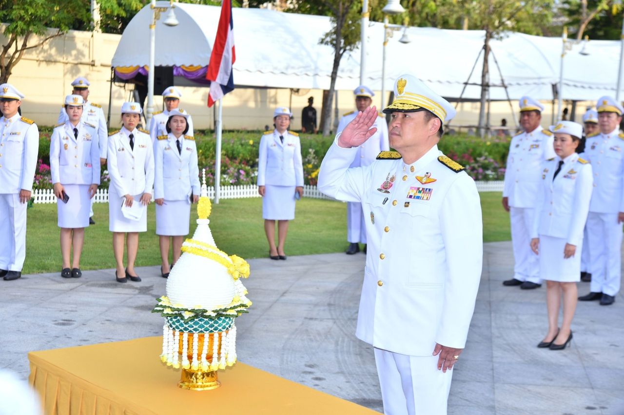 เมื่อนายกรัฐมนตรีเดินทางถึงปฐมบรมราชานุสรณ์ ได้ถวายความเคารพ ก่อนวางพานพุ่มดอกไม้ถวายราชสักการะพระบรมรูปพระบาทสมเด็จพระพุทธยอดฟ้าจุฬาโลกมหาราช จำนวน 2 พาน ในนามนายกรัฐมนตรีและคณะรัฐมนตรี เป็นอันเสร็จพิธี
