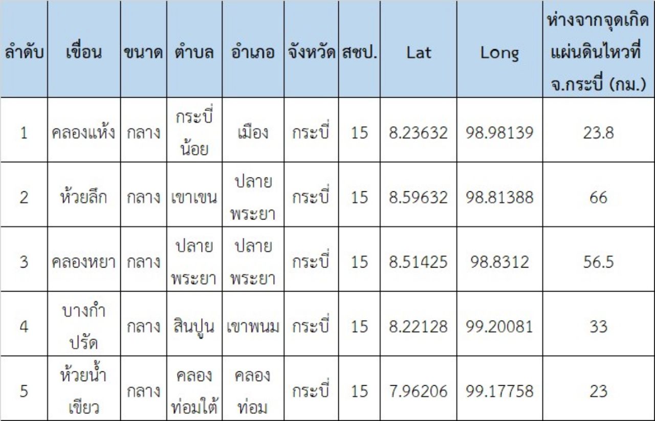 “จากการตรวจสอบเขื่อนเก็บน้ำขนาดกลางทั้งสิ้น 5 เขื่อน ที่อยู่ในจังหวัดกระบี่ อยู่ในสภาพปกติ แรงสั่นไหวที่เกิดขึ้นไม่ส่งผลกระทบต่อความมั่นคงแข็งแรงของตัวเขื่อนและอาคารชลประทานในพื้นที่ จ.กระบี่ และบริเวณพื้นที่ใกล้เคียงแต่อย่างใด เพราะกรมชลประทานได้ออกแบบเขื่อนให้สามารถรับเหตุแผ่นดินไหวขนาดประมาณ 7-7.5 อย่างไรก็ตาม เราจะติดตามข้อมูลอย่างใกล้ชิด เพื่อให้ประชาชนที่อาศัยอยู่บริเวณเขื่อนมีความมั่นใจในความปลอดภัยแข็งแรงของเขื่อน” นางนฤมล กล่าว