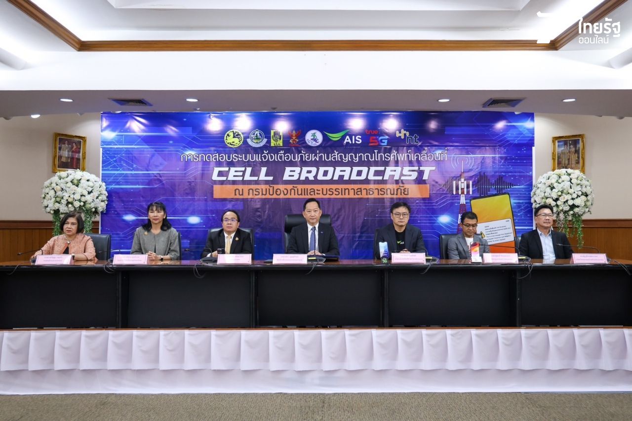 วันที่ 23 เมษายน 2568 ที่กรมป้องกันและบรรเทาสาธารณภัย นายภาสกร บุญญลักษม์ อธิบดีกรมป้องกันและบรรเทาสาธารณภัย (ปภ.) แถลงถึงการเตรียมเปิดระบบทดสอบการแจ้งเตือนภัยแบบเซลล์บอร์ดแคส (Cell Broadcast Service) อย่างเต็มรูปแบบ ร่วมกับกระทรวงดิจิทัลเพื่อเศรษฐกิจและสังคม สำนักงานคณะกรรมการกิจการกระจายเสียง กิจการโทรทัศน์ และกิจการโทรคมนาคมแห่งชาติ (กสทช.) กรมประชาสัมพันธ์ และผู้ให้บริการเครือข่ายโทรศัพท์เคลื่อนที่ ประกอบด้วย AIS TRUE และ NT