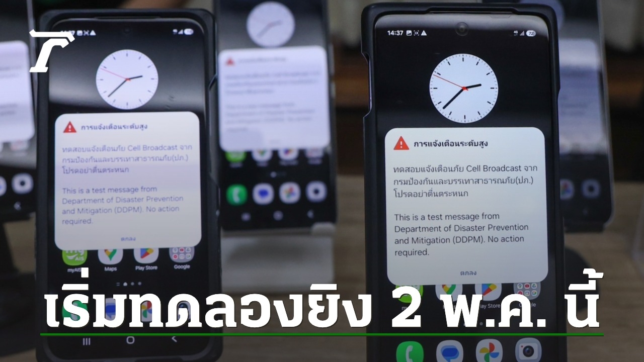ปภ. จับมือ 3 ค่ายมือถือ-กสทช.-ดีอี เตรียมทดสอบระบบเตือนภัยพิบัติผ่าน Cell Broadcast แบ่งเป็น 3 ระดับ ทั่วประเทศ เริ่ม 2 พ.ค. นี้ มั่นใจสมาร์ทโฟนรับข้อความใน 10 นาที ขณะที่มือถือสเปคต่ำส่งผ่าน SMS พร้อมขยายช่องส่ง 36 ล้านเบอร์ต่อครั้ง