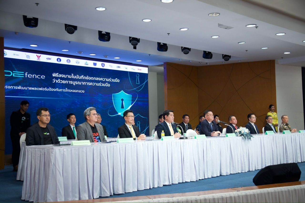 สำหรับ 16 หน่วยงานที่ร่วมในพิธีบันทึกข้อตกลงความร่วมมือว่าด้วยการบูรณาการความร่วมมือโครงการพัฒนาแพลตฟอร์มป้องกันการโทรหลอกลวง (DE-fence)