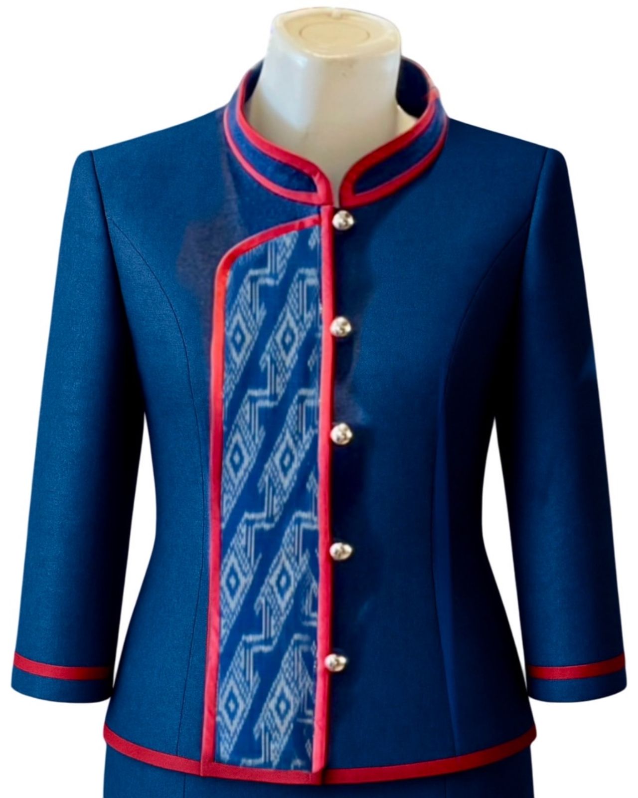เสื้อชุดศรีโคตรบูร ถูกตัดเย็บด้วยผ้าไหมพื้นเรียบสีกรมท่าย้อมคราม ขลิบด้วยผ้าไหมพื้นเรียบสีแดง (ย้อมครั่ง) ตกแต่งด้านหน้าด้วยผ้าไหมมัดหมี่ “ลายขอก่ายแก้ว” สื่อถึงความเจริญรุ่งเรืองและความมั่นคง ซึ่งทอโดยกลุ่มศิลปาชีพทอผ้าไหมบ้านท่าเรือ อำเภอนาหว้า ภายใต้มูลนิธิส่งเสริมศิลปาชีพพิเศษฯ และโครงการ “นาหว้าโมเดล” ตามแนวพระราชดำริสมเด็จพระเจ้าลูกเธอ เจ้าฟ้าสิริวัณณวรี นารีรัตนราชกัญญา นับเป็นการหลอมรวมประวัติศาสตร์ ภูมิปัญญาท้องถิ่น และความภาคภูมิใจของชาวนครพนมไว้อย่างงดงาม