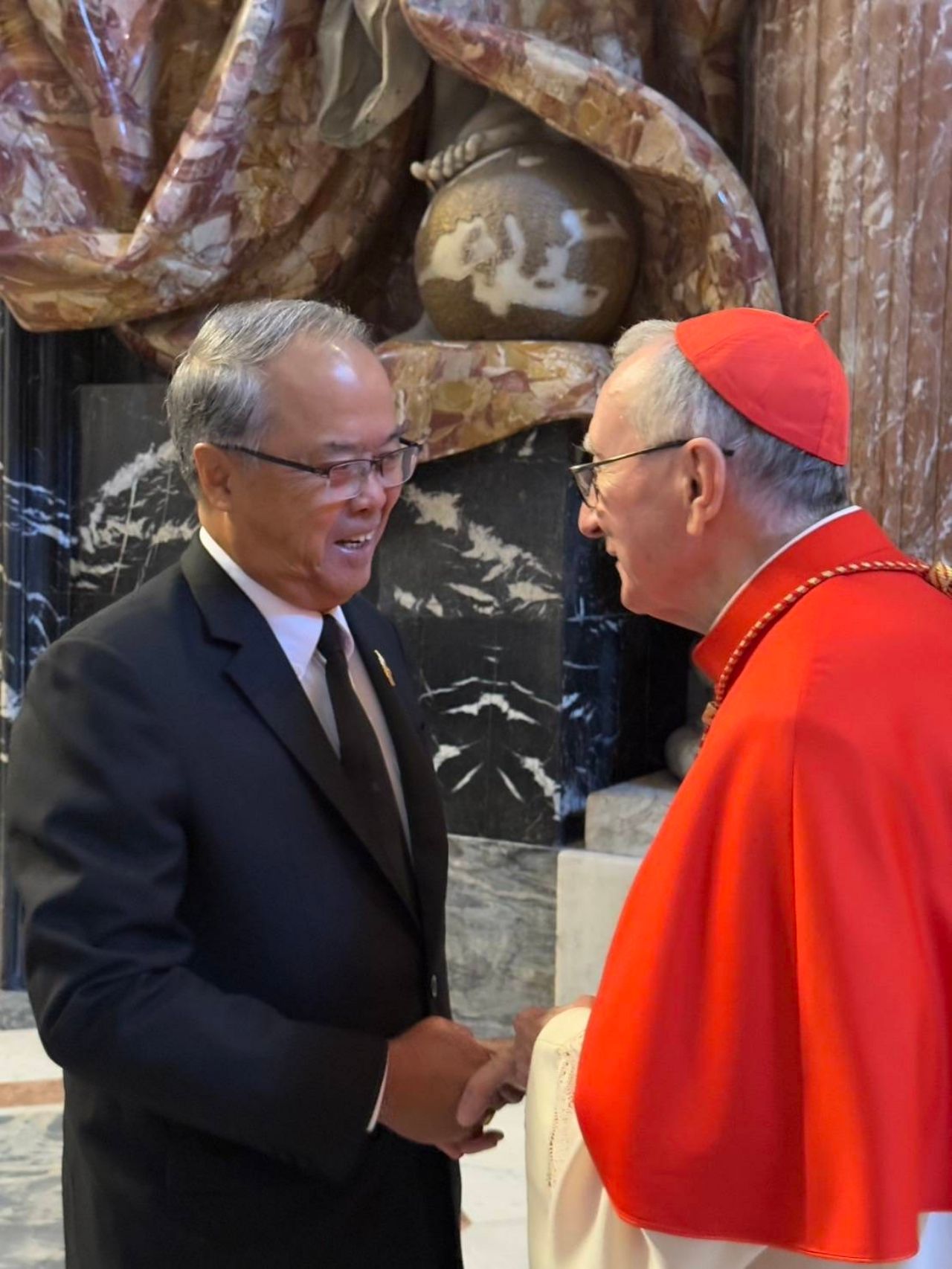 เมื่อคณะเดินทางถึงมหาวิหารเซนต์ปีเตอร์ นายชูศักดิ์และคณะได้เข้าพบพระคาร์ดินัล ปิเอโตร ปาโรลิน (Pietro Parolin) เลขาธิการสันตะสำนักในสมัยของสมเด็จพระสันตะปาปาฟรานซิส
