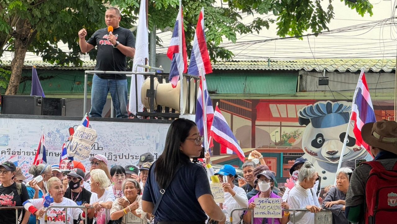 เมื่อเวลา 09.45 น. วันที่ 30 เม.ย. 2568 ที่พรรคประชาธิปัตย์ กลุ่มผู้ชุมนุมจากคปท., กองทัพธรรมและศปปส. นำโดยนายพิชิต ไชยมงคล แกนนำ คปท. ร่วม 200 คนเดินทางมาที่พรรคประชาธิปัตย์เพื่อทวงความชัดเจนจุดยืนของพรรคในเรื่องร่างพระราชบัญญัติ (พ.ร.บ.) สถานบันเทิงครบวงจร โดยนายพิชิต กล่าวว่า พรรคปชป.เคยมีอุดมการณ์จะปฏิรูปประเทศไทย วันนี้มีจุดยืนอย่างไรกับการตั้งบ่อนกาสิโน พรรคที่เคยร่วมต่อสู้กับระบอบทักษิณ แต่วันนี้นโยบายรัฐบาลที่ไม่ใช่นโยบายร่วมของรัฐบาล กลับเป็นนโยบายเร่งด่วนของนายทักษิณ ชินวัตร ที่เร่งผลักดันนโยบายเร่งด่วนเรื่องนี้ ทั้งที่ผู้นำศาสนา นิสิต นักศึกษา ประชาชน ครูบาอาจารย์ คณะแพทย์ทั้งประเทศแสดงจุดยืนไม่เห็นด้วยกับการตั้งกาสิโนและพนันออนไลน์ จึงต้องถามพรรคประชาธิปัตย์ที่มีสส.ในสภา ว่าพรรคท่านจะยืนหยัดบนผลประโยชน์ของประชาชน หรือยืนยันบนผลประโยชน์ของฝ่ายการเมืองกันแน่