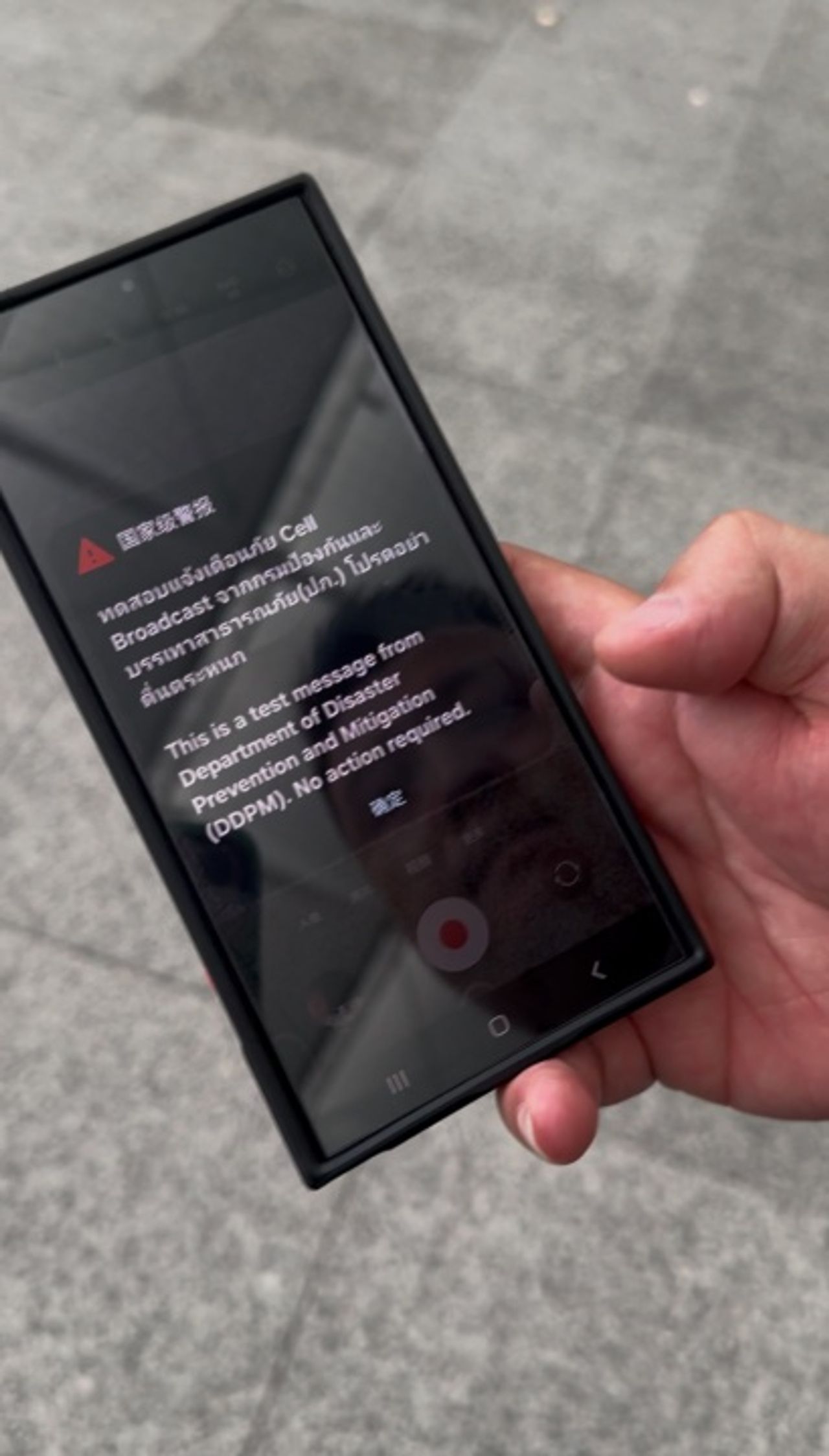 ผู้สื่อข่าวได้เดินไปสอบถามและขอดูข้อความที่ปรากฏหน้าจอโทรศัพท์จากประชาชนที่อยู่ใกล้เคียงพบว่าบางคนก็ได้รับข้อความแจ้งเตือนภัยแต่ในขณะที่บางคนกลับไม่ได้ข้อความทั้งที่ใช้สัญญาณโทรศัพท์เครือข่ายเดียวกัน พร้อมกับตั้งคำถามกลับว่าทำไมถึงไม่ได้ข้อความแจ้งเตือนและหากเกิดสถานการณ์ขึ้นจริงไม่ได้อยู่กับเพื่อนหรืออยู่กับคนที่ได้รับข้อความแจ้งเตือนภัยก็อาจจะไม่รู้ถึงการแจ้งเตือนภัยนี้ได้