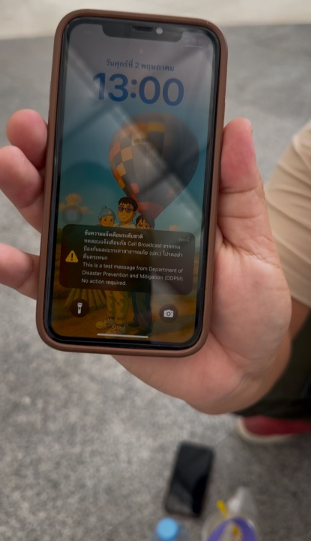 ขณะอาคาร B บริเวณชั้น 2 ลานอเนกประสงค์ ได้ประกาศผ่านลำโพงทั้งภาษาไทยและภาษาอังกฤษ เป็นระยะแจ้งให้ผู้ที่อยู่ในพื้นที่ได้รับทราบว่าในเวลา 13:00 น. จะมีการทดสอบระบบแจ้งเตือนภัยขออย่าให้ประชาชนตื่นตระหนกหากได้รับ SMS แจ้งเตือนภัย