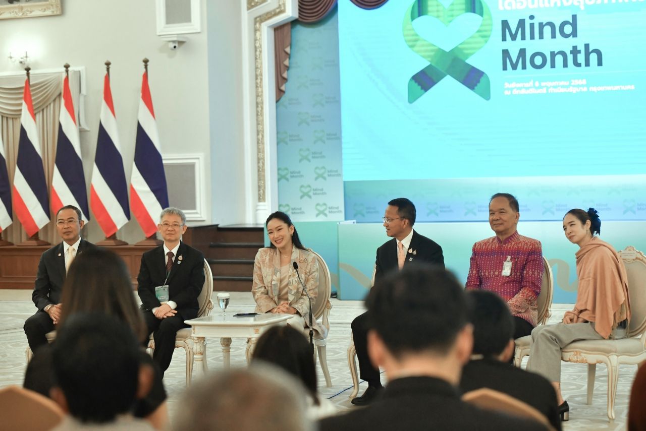 เมื่อเวลา 15.00 น. วันที่ 6 พฤษภาคม 2568 น.ส.แพทองธาร ชินวัตร นายกรัฐมนตรี เป็นประธานเปิดงาน “เดือนแห่งสุขภาพใจ Mind Month” จัดโดยกรมสุขภาพจิต กระทรวงสาธารณสุข (สธ.) ร่วมกับสำนักงานกองทุนสนับสนุนการสร้างเสริมสุขภาพ (สสส.) องค์การอนามัยโลก (WHO) และภาคีเครือข่าย พร้อมเยี่ยมชมนิทรรศการ “สุขภาพใจเป็นเรื่องของทุกคน” และร่วมเสวนา “สุขภาพใจ เริ่มต้นได้ที่ครอบครัว” ร่วมกับตัวแทนครอบครัวในสายอาชีพต่างๆ กว่า 20 ครอบครัว ที่ตึกสันติไมตรี ทำเนียบรัฐบาล