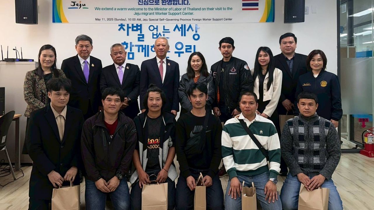“พิพัฒน์” เยือนเกาะเชจู เตรียมประชุมรัฐมนตรี APEC 2025 พบแรงงานไทย แนะสร้างชีวิตที่มั่นคง อย่ายุ่งยาเสพติดและการพนัน เปิดใจเรียนรู้นิสัยนายจ้าง