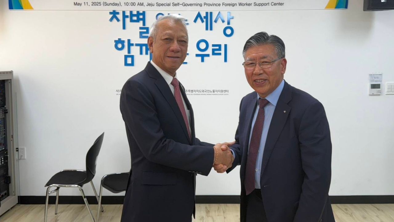 คณะกระทรวงแรงงานไทยได้เยือนศูนย์สนับสนุนแรงงานต่างชาติ จังหวัดเชจู ซึ่งเป็นหน่วยงานสำคัญที่ดูแลแรงงานต่างชาติในพื้นที่ โดยมีนางสาวมียอง คิม ผู้อำนวยการสำนักส่งเสริมเศรษฐกิจ จังหวัดเชจู นายเซมุน ลี ประธานชุมชนสันติภาพของชาวต่างชาติในเชจู และนายยงกิล ฮัน ผู้อำนวยการศูนย์ฯ ให้การต้อนรับ