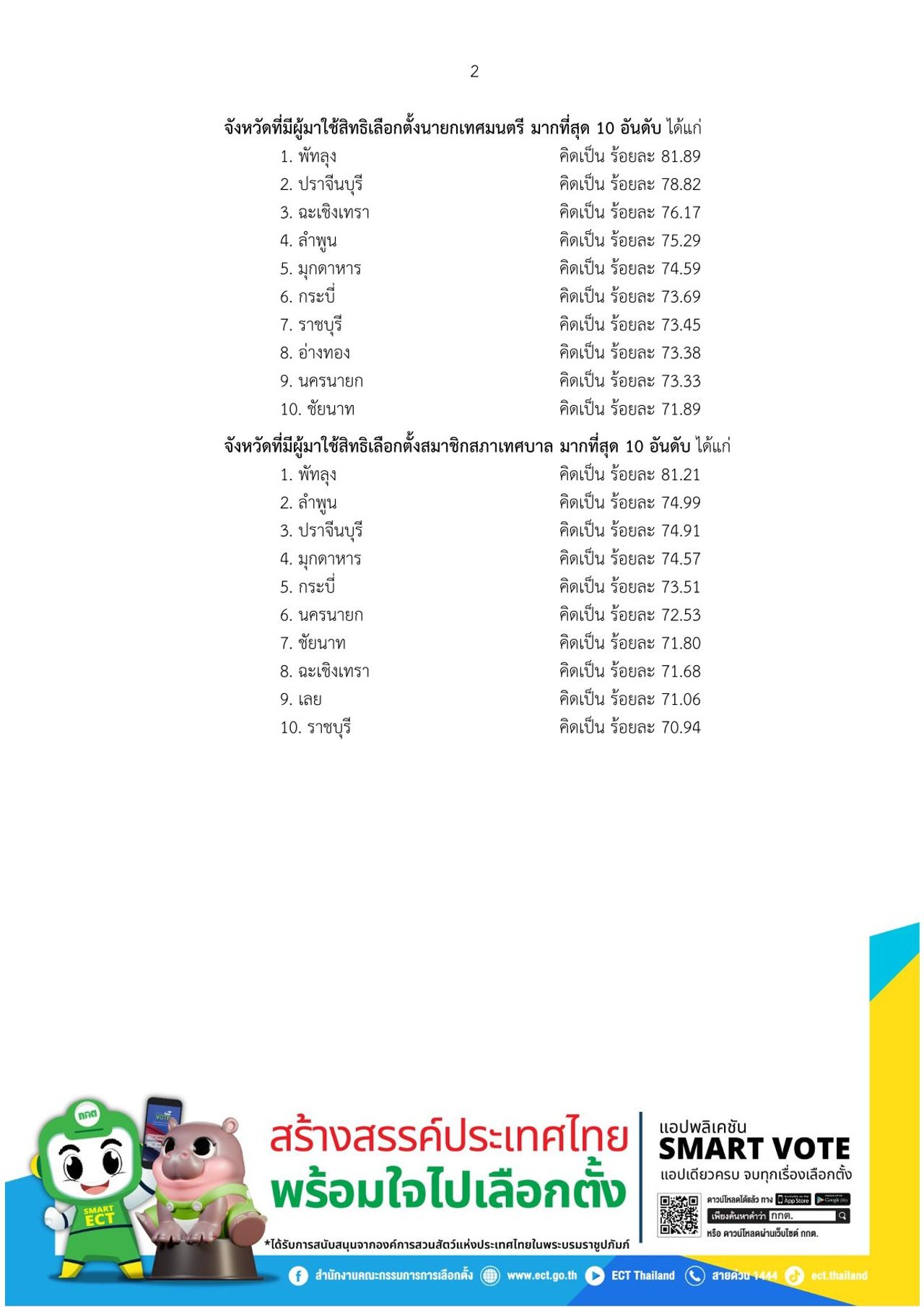 มาใช้สิทธิ 10,363,490 คน คิดเป็นร้อยละ 63.80