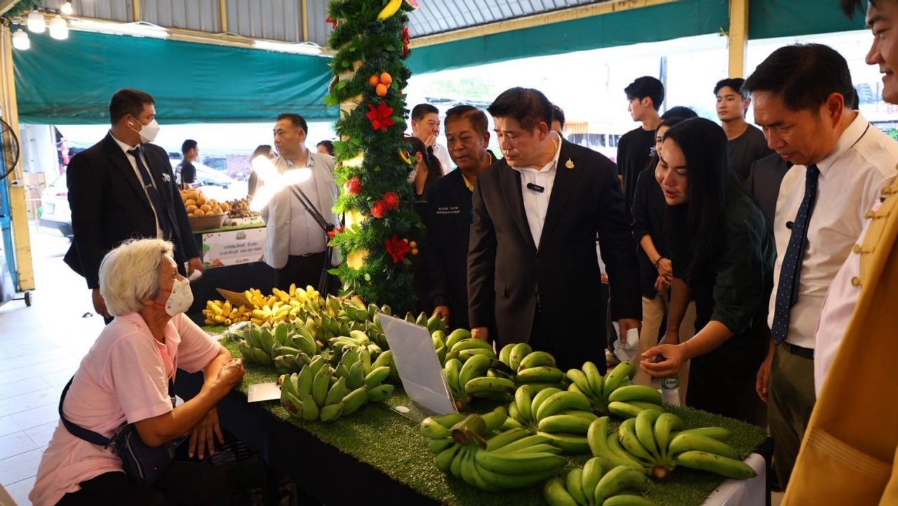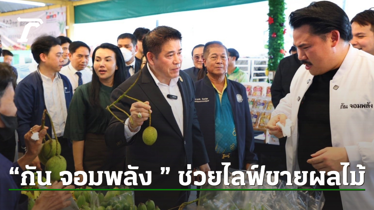 “ธรรมนัส” นำ “กัน จอมพลัง” ไลฟ์สดขายผลไม้ช่วยชาวสวนและเกษตรกร ที่นำผลผลิตมาขาย ในงาน “มหานครผลไม้ไทยภาคตะวันออก” ที่ตลาด อ.ต.ก. หวังเพิ่มช่องทางจำหน่ายผลผลิต ลดปัญหาถูกกดราคาจากพ่อค้าคนกลาง