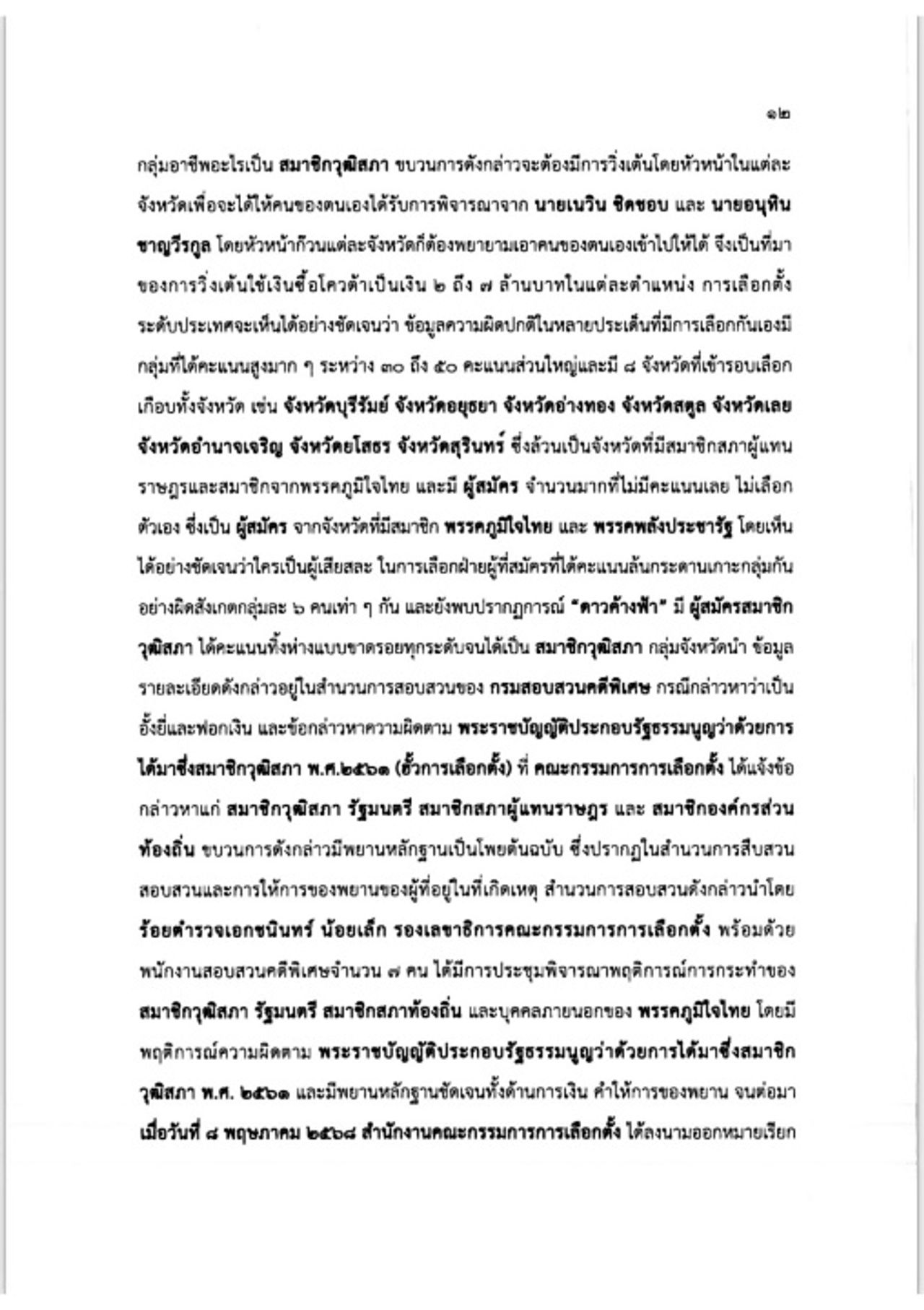 เปิดคำร้อง “ณฐพร” ยื่นยุบพรรคภูมิใจไทย แจงยิบพฤติการณ์ “เนวิน-กรุณา-อนุทิน” พร้อม 8 สส.ยังเติร์ก เกี่ยวข้องขบวนการฮั้วเลือก สว.  ใช้ จ.บุรีรัมย์ อ่างทอง อยุธยา ศรีสะเกษ เลย และอุบลราชธานีเป็นศูนย์กลางฮั้ว