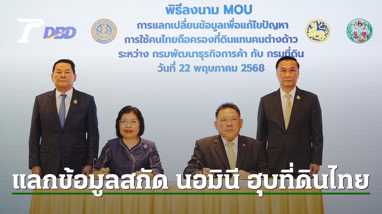 กรมพัฒนาธุรกิจการค้า แท็กทีม กรมที่ดิน ทำ MOU แลกเปลี่ยนข้อมูล แก้ปัญหานอมินีถือครองที่ดินของไทย ด้าน“นภินทร”มั่นใจเอ็มโอยูไม่ใช่แค่กระดาษเปล่า แต่เป็นความหวังปกป้องประโยชน์ของชาติ