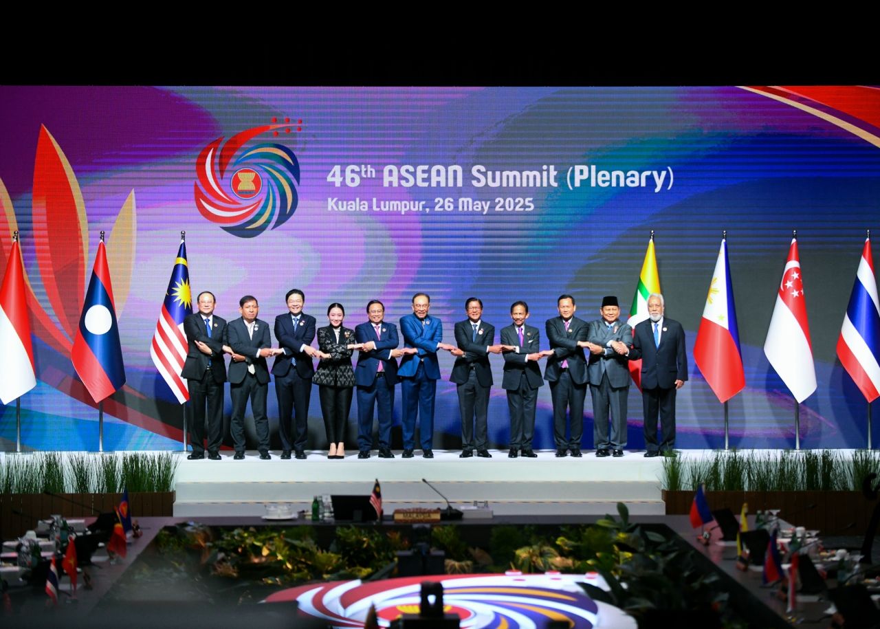 วันที่ 26 พฤษภาคม 2568 เวลา 09.00 น. ตามเวลาท้องถิ่น ณ กรุงกัวลาลัมเปอร์ (ตรงกับเวลา 08.00 น. ตามเวลาในประเทศไทย) นายจิรายุ ห่วงทรัพย์ โฆษกประจำสำนักนายกรัฐมนตรี เปิดเผยว่า นางสาวแพทองธาร ชินวัตร นายกรัฐมนตรี เข้าร่วมการประชุมสุดยอดอาเซียน ครั้งที่ 46 ณ ห้องประชุม Conference Hall 1 ชั้น 3 ศูนย์การประชุม Kuala Lumpur Convention Center (KLCC) กรุงกัวลาลัมเปอร์ มาเลเซีย โดยนายกรัฐมนตรี พร้อมด้วย นายพิชัย นริพทะพันธุ์ รัฐมนตรีว่าการกระทรวงพาณิชย์ นายมาริษ เสงี่ยมพงษ์ รัฐมนตรีว่าการกระทรวงการต่างประเทศ นายจุลพันธ์ อมรวิวัฒน์ รัฐมนตรีช่วยว่าการกระทรวงคลัง นายอุเมสนัส ปานเดย์ ผู้แทนการค้าไทย นายดนุชา พิชยนันท์ เลขาธิการสภาพัฒนาการพัฒนาเศรษฐกิจและสังคมแห่งชาติ นายพรหมินทร์ เลิศสุริย์เดช เลขาธิการนายกรัฐมนตรี เดินทางมาถึงกรุงกัวลาลัมเปอร์ เมื่อวันที่ 25 พฤษภาคม 2568 เวลา 21.50 น. ตามเวลาท้องถิ่น