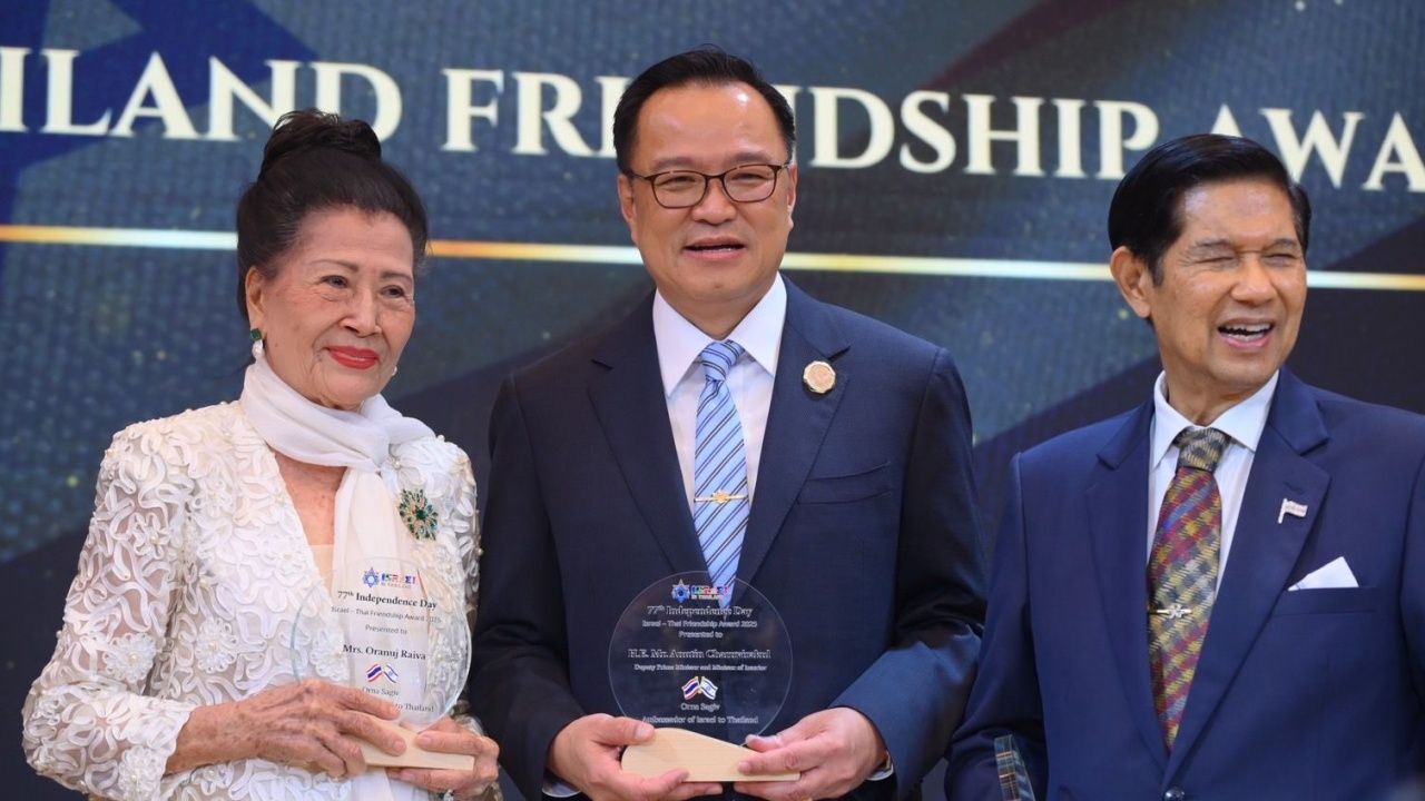 เมื่อเวลา 19.00 น. วันที่ 27 พ.ค. 2568 นายอนุทิน ชาญวีรกูล รองนายกรัฐมนตรีและรมว.มหาดไทย เข้ารับ “รางวัลมิตรภาพอิสราเอล-ไทย ประจำปี 2568” (ISRAEL - THAILAND FRIENDSHIP AWARD 2025) จากนางออร์นา ซากิฟ (H.E. Ms. Orna Sagiv) เอกอัครราชทูตวิสามัญผู้มีอำนาจเต็มแห่งสาธารณรัฐอิสราเอลประจำประเทศไทย เนื่องในวันครบรอบ 77 ปีของการสถาปนาประเทศอิสราเอล ณ โรงแรมคาร์ลตัน กรุงเทพ สุขุมวิท โดยมี นายอรรษิษฐ์ สัมพันธรัตน์ ปลัดกระทรวงมหาดไทย นายไชยวัฒน์ จุนถิระพงศ์ อธิบดีกรมการปกครอง ร่วมในงาน
