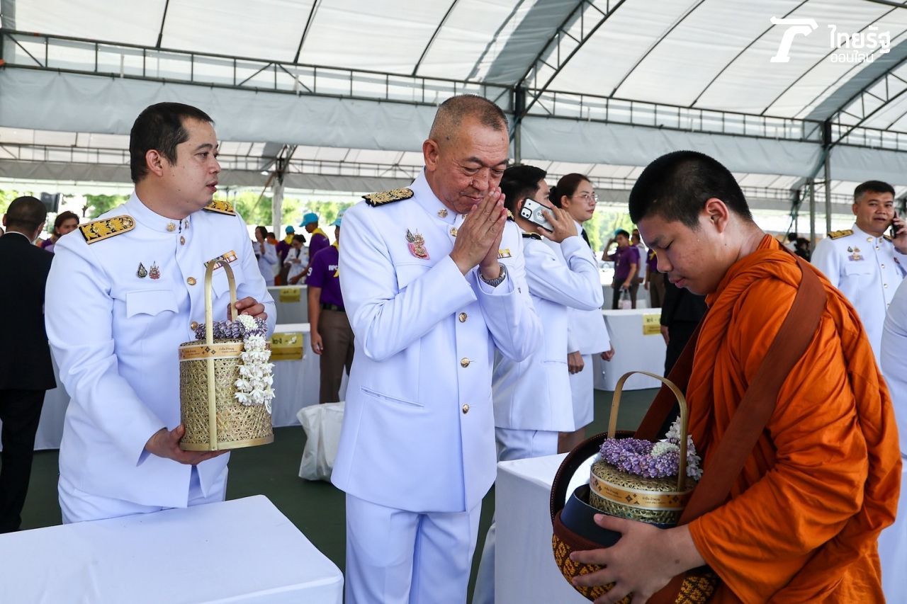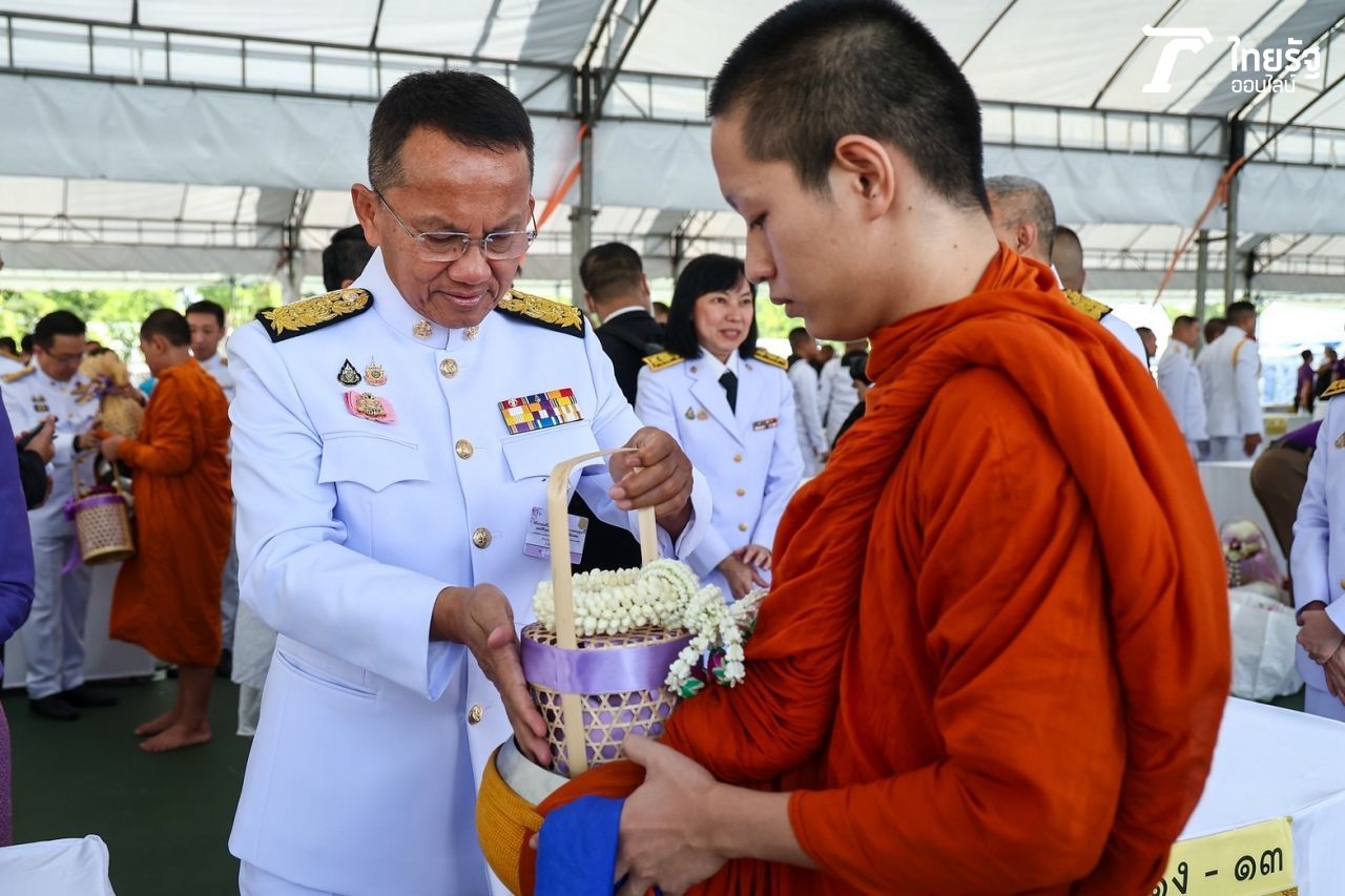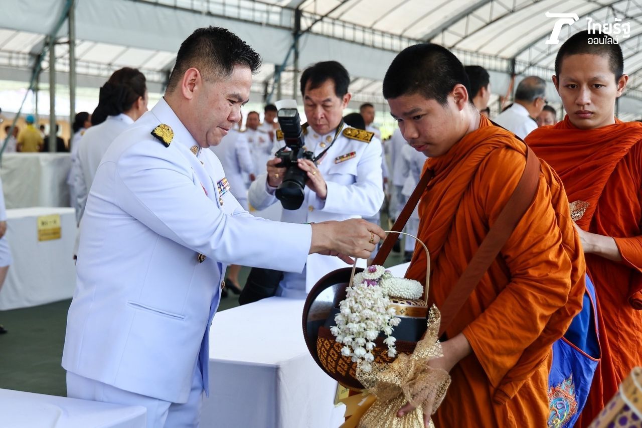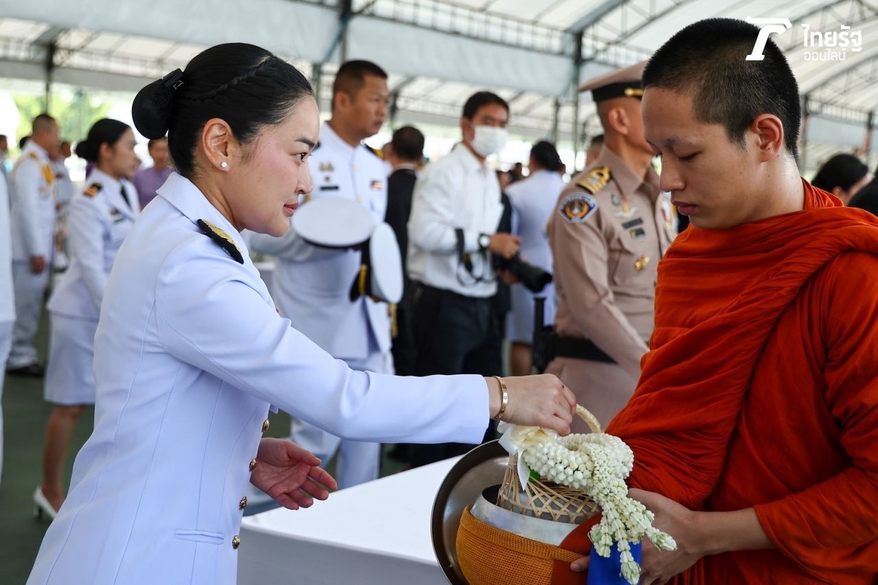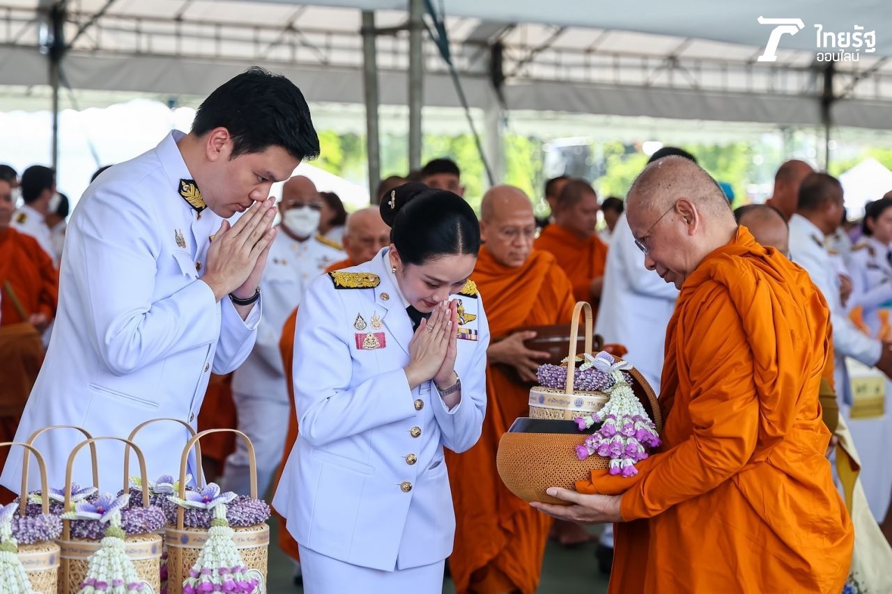จากนั้นนายกรัฐมนตรีและคู่สมรส ประธานศาลฎีกาและคู่สมรส ประธานวุฒิสภา ผู้แทนประธานรัฐสภา ประธานศาลปกครองสูงสุด ประธานกรรมการการเลือกตั้ง ประธานผู้ตรวจการแผ่นดิน ประธานองค์กรตามรัฐธรรมนูญ และส่วนราชการในพระองค์ ถวายผ้าไตรและเครื่องไทยธรรม แด่พระสงฆ์ จำนวน 10 รูป นายกรัฐมนตรีกรวดน้ำรับพร กราบลาพระรัตนตรัย ถวายความเคารพหน้าพระฉายาลักษณ์ สมเด็จพระนางเจ้าฯ พระบรมราชินี ก่อนที่นายกรัฐมนตรีพร้อมคู่สมรสจะนำผู้เข้าร่วมพิธีร่วมตักบาตรพระสงฆ์ จำนวน 148 รูป เมื่อเสร็จพิธี นายกรัฐมนตรีและคู่สมรสเดินทางไปลงนามถวายพระพรชัยมงคลสมเด็จพระนางเจ้าฯ พระบรมราชินี ณ ห้องแดง อาคารหน่วยราชการในพระองค์ 904 ในพระบรมมหาราชวัง.
