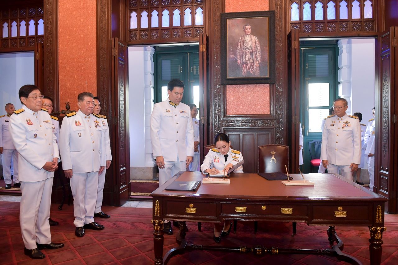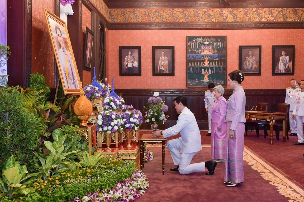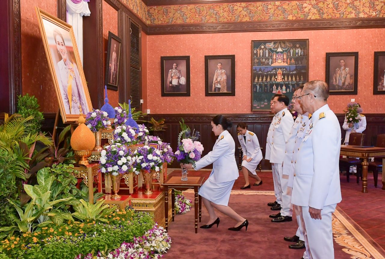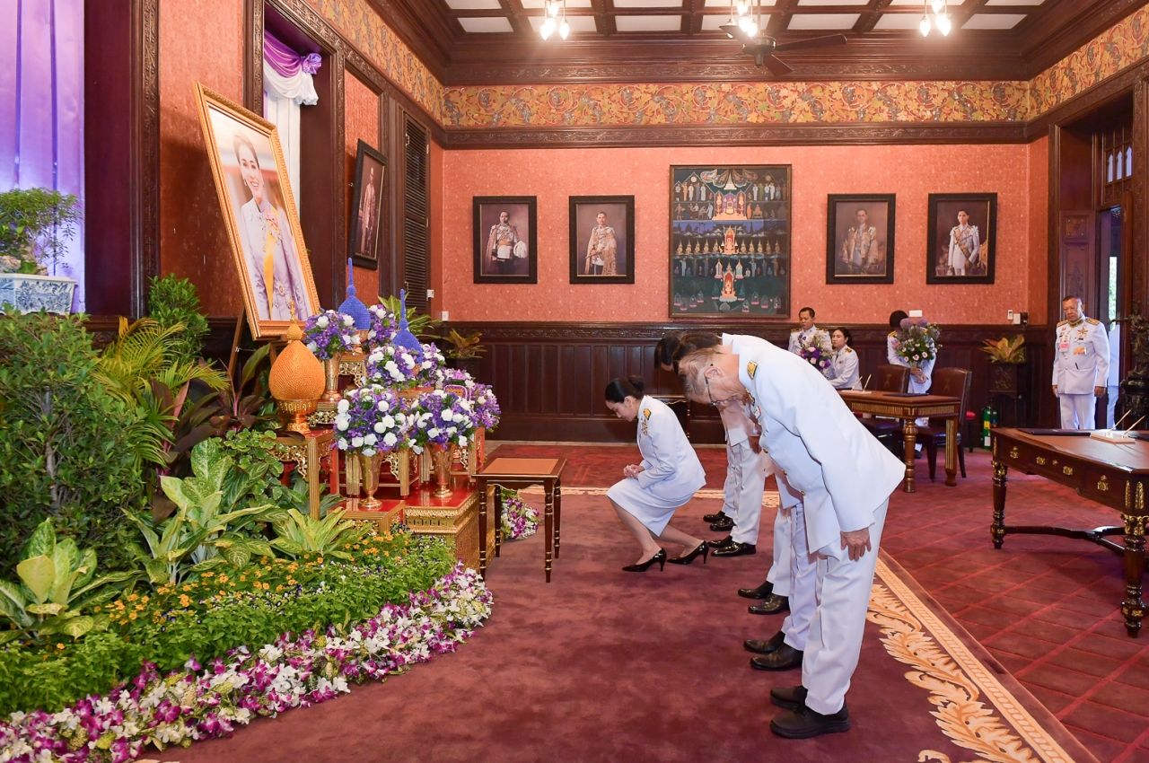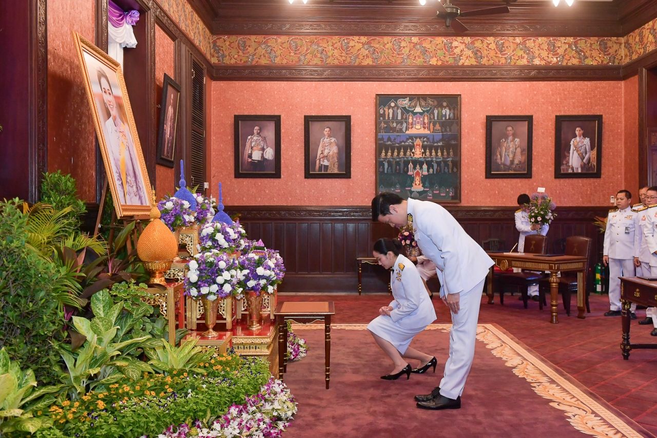 จากนั้นนายกรัฐมนตรีและคู่สมรส ประธานศาลฎีกาและคู่สมรส ประธานวุฒิสภา ผู้แทนประธานรัฐสภา ประธานศาลปกครองสูงสุด ประธานกรรมการการเลือกตั้ง ประธานผู้ตรวจการแผ่นดิน ประธานองค์กรตามรัฐธรรมนูญ และส่วนราชการในพระองค์ ถวายผ้าไตรและเครื่องไทยธรรม แด่พระสงฆ์ จำนวน 10 รูป นายกรัฐมนตรีกรวดน้ำรับพร กราบลาพระรัตนตรัย ถวายความเคารพหน้าพระฉายาลักษณ์ สมเด็จพระนางเจ้าฯ พระบรมราชินี ก่อนที่นายกรัฐมนตรีพร้อมคู่สมรสจะนำผู้เข้าร่วมพิธีร่วมตักบาตรพระสงฆ์ จำนวน 148 รูป เมื่อเสร็จพิธี นายกรัฐมนตรีและคู่สมรสเดินทางไปลงนามถวายพระพรชัยมงคลสมเด็จพระนางเจ้าฯ พระบรมราชินี ณ ห้องแดง อาคารหน่วยราชการในพระองค์ 904 ในพระบรมมหาราชวัง.