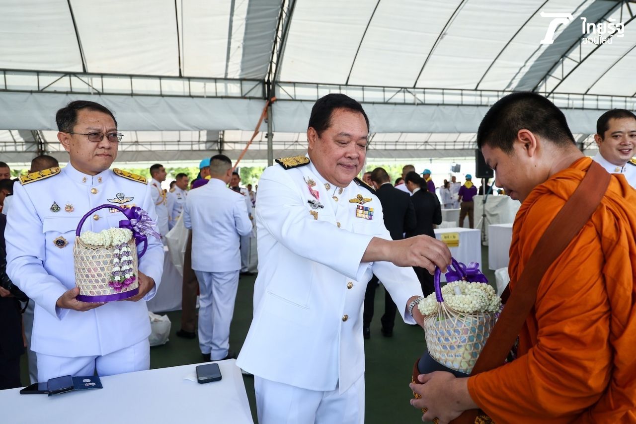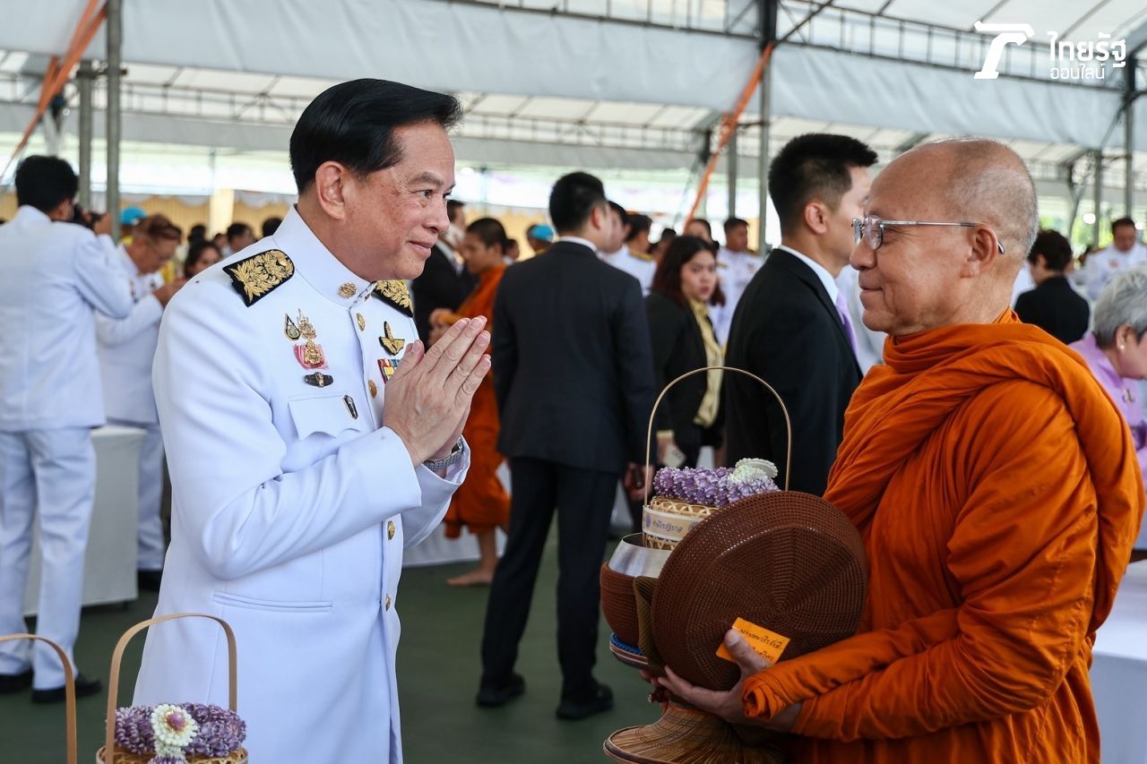 เมื่อนายกรัฐมนตรีและคู่สมรสเดินทางมาถึงปะรำพิธีท้องสนามหลวง สมเด็จพระราชาคณะ พระราชาคณะ จำนวน 10 รูป ขึ้นนั่งอาสน์สงฆ์ นายกรัฐมนตรีจุดธูปเทียนบูชาพระรัตนตรัย ถวายคำนับและถวายธูปเทียนแพหน้าพระฉายาลักษณ์สมเด็จพระนางเจ้าฯ พระบรมราชินี เจ้าหน้าที่อาราธนาศีล สมเด็จพระราชาคณะ พระราชาคณะ จำนวน 10 รูป ให้ศีล พระสงฆ์สวดพระพุทธมนต์
