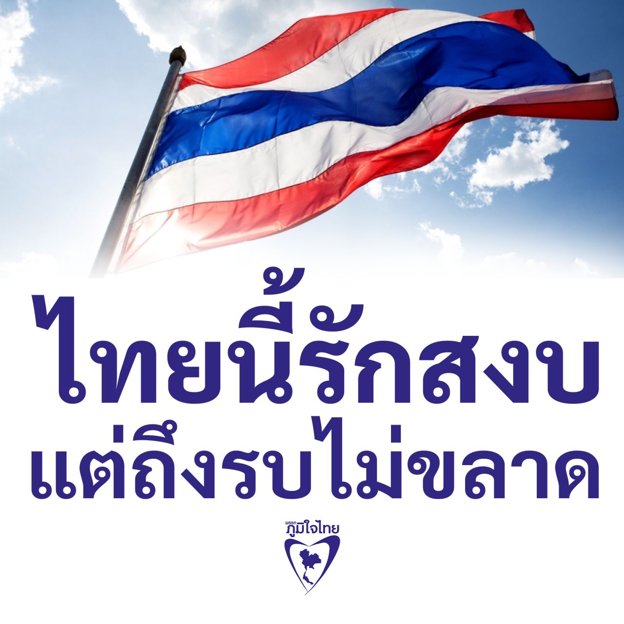 พรรคภูมิใจไทย เคลื่อนไหวแล้ว รณรงค์ส่งกำลังใจให้รั้วของชาติ แกนนำ และ ส.ส. ภูมิใจไทย ทั้ง 69 คน พร้อมใจลงภาพ อินโฟกราฟิก ติดแฮชแท็ก ไทยนี้รักสงบแต่ถึงรบไม่ขลาด