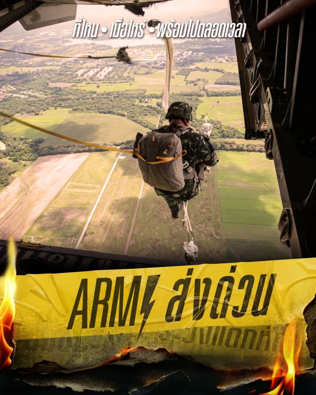 นอกจากนี้ ยังโพสต์อีกว่า ARMY #ส่งด่วน ที่ไหน | เมื่อไร | พร้อมไปตลอดเวลา