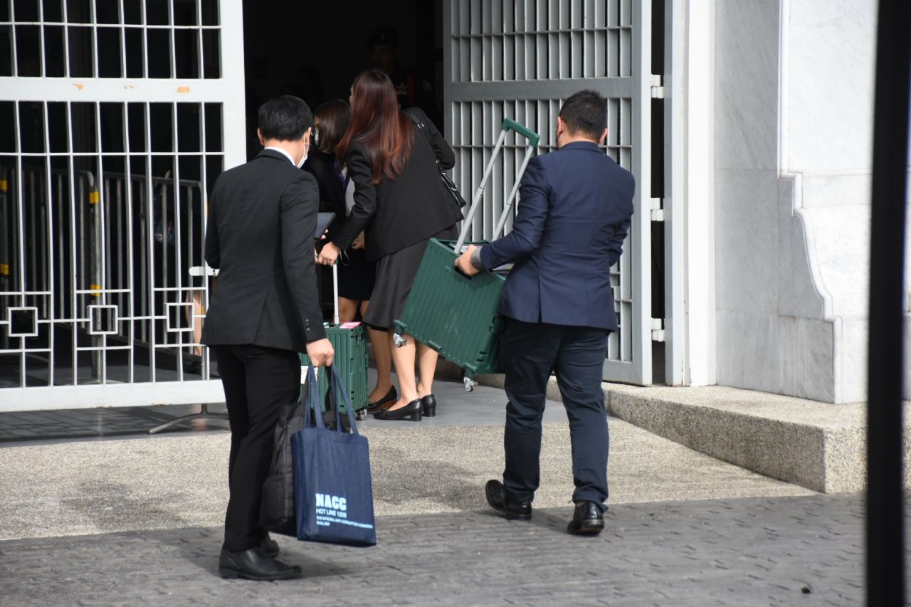 จากนั้นเวลา 08.30 น. ฝ่ายคณะกรรมการป้องกันและปราบปรามการทุจริตแห่งชาติ (ป.ป.ช.) ได้เดินทางมาถึงศาลฎีกา พร้อมนำเอกสารพยานหลักฐานในคดีบรรจุแฟ้ม เพื่อใช้ในการไต่สวนวันนี้ โดยไม่มีการเปิดเผยรายละเอียดแต่อย่างใด