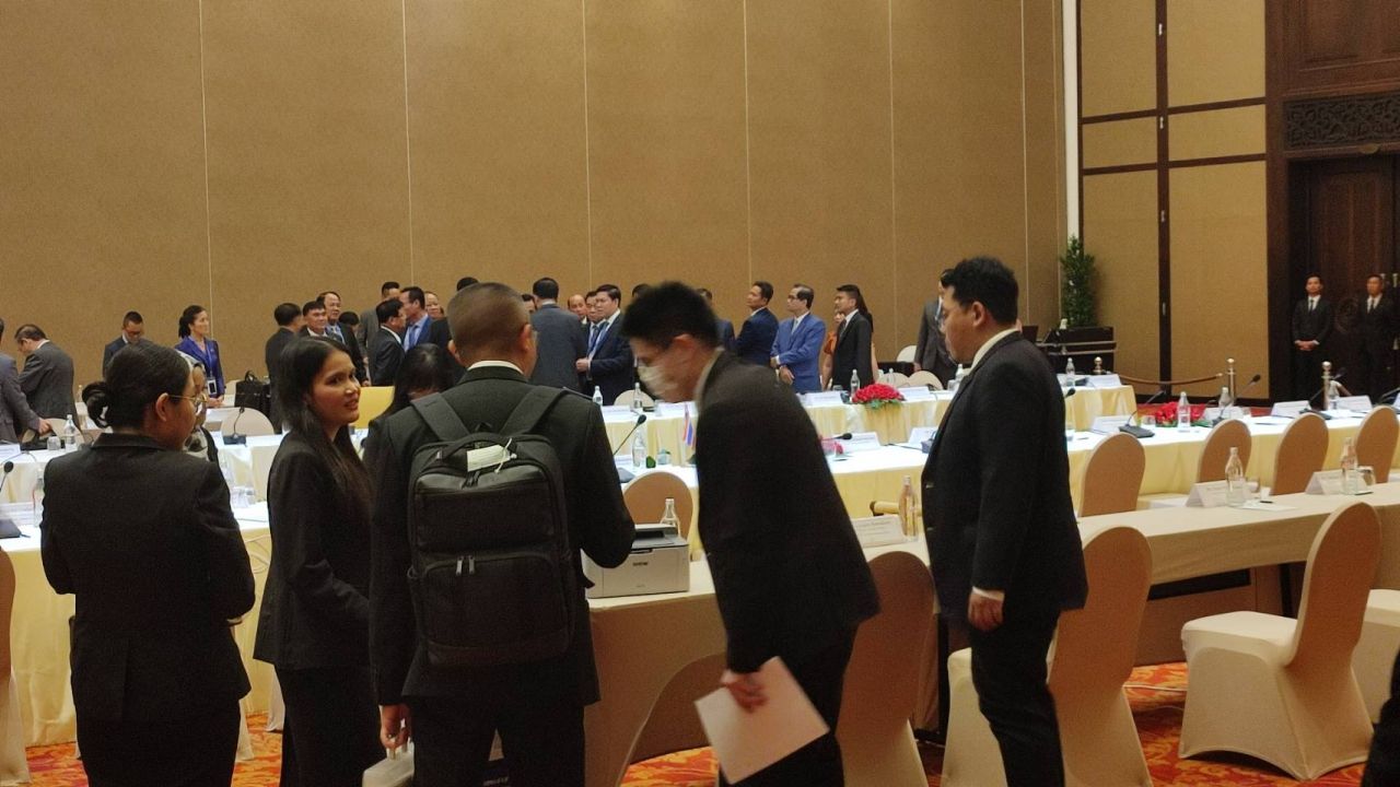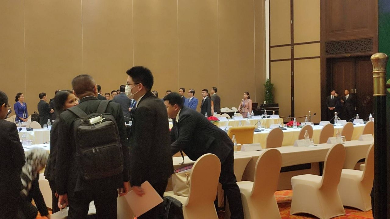 ส่วนนายฬำ เจีย รัฐมนตรีรับผิดชอบกิจการชายแดนและหัวหน้าสำนักงานเลขาธิการกิจการชายแดนแห่งชาติกัมพูชา ประธานร่วมฝ่ายกัมพูชา ได้ยืนคุยอยู่กับคณะของฝ่ายกัมพูชาอยู่ภายในห้องประชุม