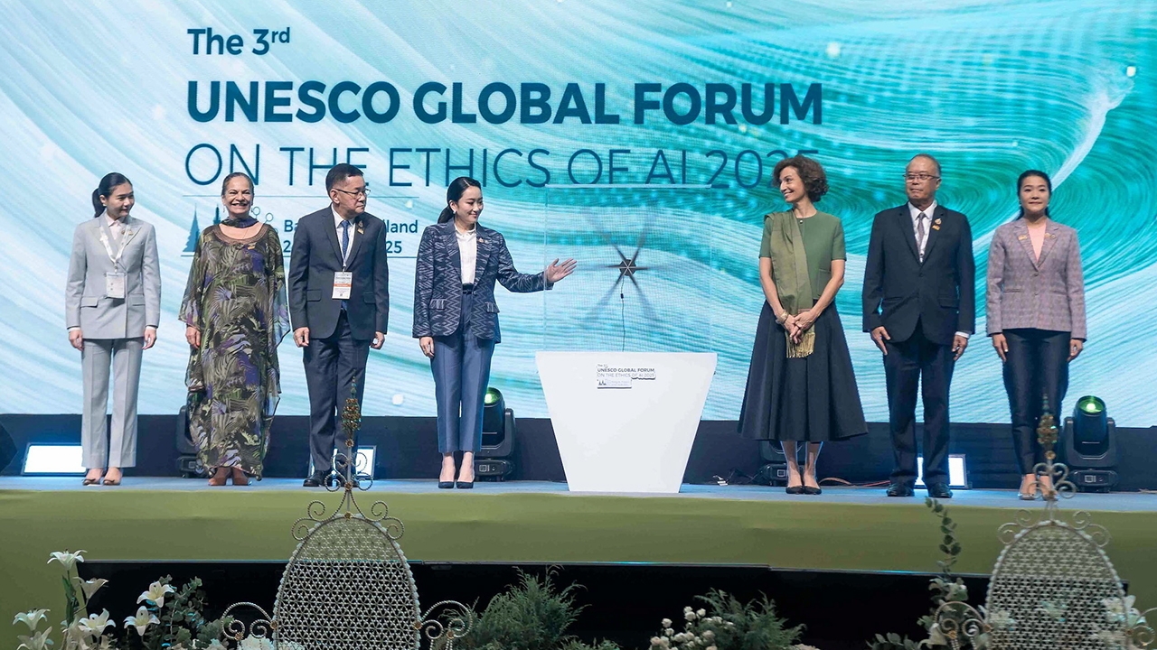 นายกฯแพทองธารชูไทยผู้นำจริยธรรม AI บนเวทีโลก ในการประชุมวิชาการนานาชาติ “The 3rd UNESCO Global Forum on the Ethics of AI 2025” ดัน AI Governance Practice Center (AIGPC) เป็นศูนย์ธรรมาภิบาล AI ในเอเชียแปซิฟิก พร้อมแสดงวิสัยทัศน์ไทยพร้อมเดินหน้าพัฒนา AI เพื่อให้เกิดประโยชน์กับทุกคนอย่างเท่าเทียม เผย 3 แนวทางสำคัญกำหนดทิศทางอนาคต AI ในไทย ประกอบด้วยเสริมศักยภาพด้านบวกของ AI ให้เกิดประโยชน์สูงสุด ป้องกันการนำ AI สร้างข่าวปลอม และยึดประชาชนเป็นศูนย์กลางของการพัฒนา AI เชิญชวนชมกิจกรรม “Bangkok AI Week 2025” เทศกาลที่เปลี่ยนกรุงเทพมหานครเป็นเวทีด้านอนาคต AI