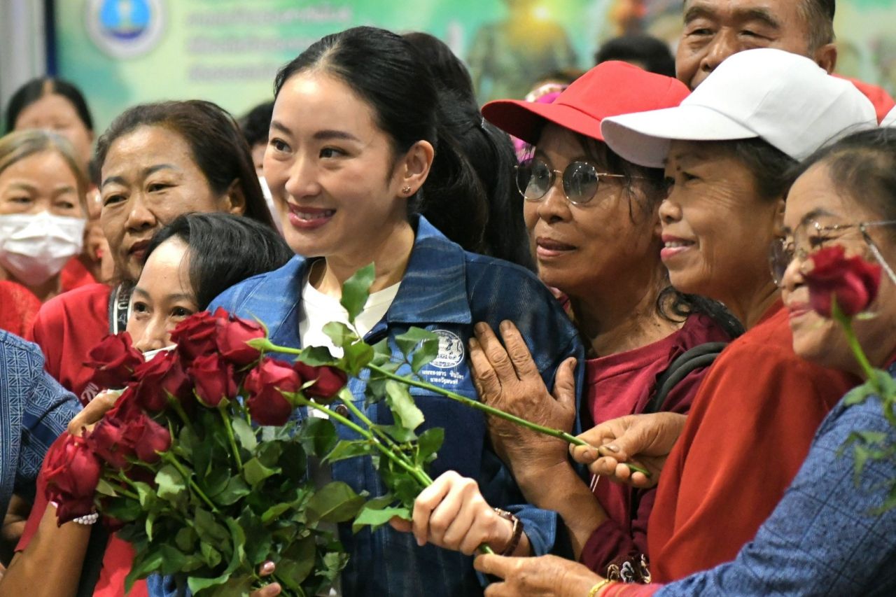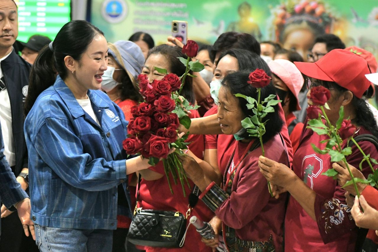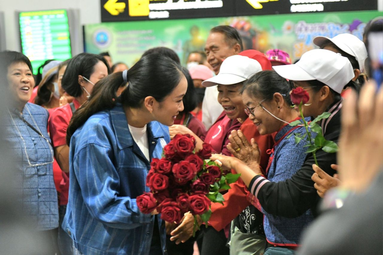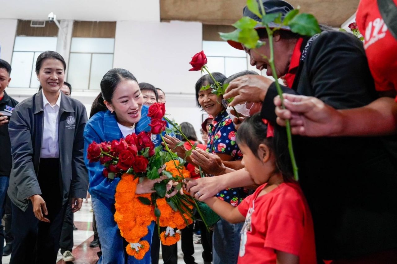 เมื่อน.ส.แพทองธารและคณะเดินทางถึงท่าอากาศยานแม่ฟ้าหลวง ในเวลา 10.20 น. มีนางละออง ติยะไพรัช สส.เชียงราย พรรคเพื่อไทย และนายรุจติศักดิ์ รังษี รองผู้ว่าราชการ จ.เชียงราย รอต้อนรับเพื่อรายงานสถานการณ์ พร้อมทั้งได้มีประชาชนชาวเชียงรายใส่เสื้อสีแดงมารอให้การต้อนรับพร้อมมอบดอกกุหลาบให้กำลังใจแก่ น.ส.แพทองธาร โดยบอกว่า “สู้ๆ นะเจ้า” ซึ่งน.ส.แพทองธารได้พูดคุยทักทาย ร่วมถ่ายภาพเซลฟี่อย่างเป็นกันเอง
